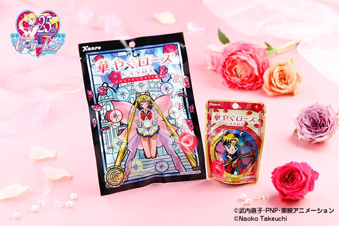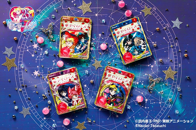 Cukierki w opakowaniach z Sailor Moon pojawią się w sprzedaży 26 października. Do kupienia będą trzy wzory większych paczek oraz cztery wzory mniejszych paczek. Wzór z większych paczek ustawiony w odpowiedniej kolejności tworzy Księżycowy Pałac w tle za wojowniczkami.