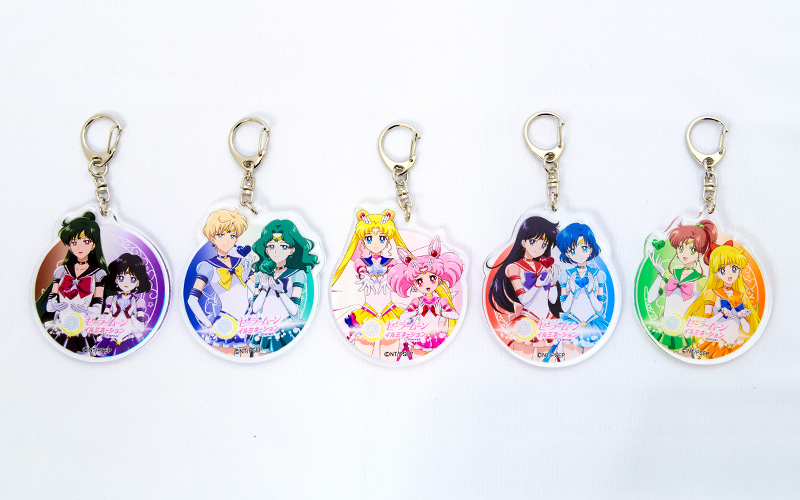 1300 jenów za sztukę (ok. 46 zł). - akrylowe breloki - do uzbierania 5 sztuk: Moon/Chibi Moon, Mercury/Mars, Jupiter/Venus, Uranus/Neptune oraz Pluto/Saturn; wymiary zawieszek to 60 x 60 mm; sprzedawane losowo w cenie 750 jenów
