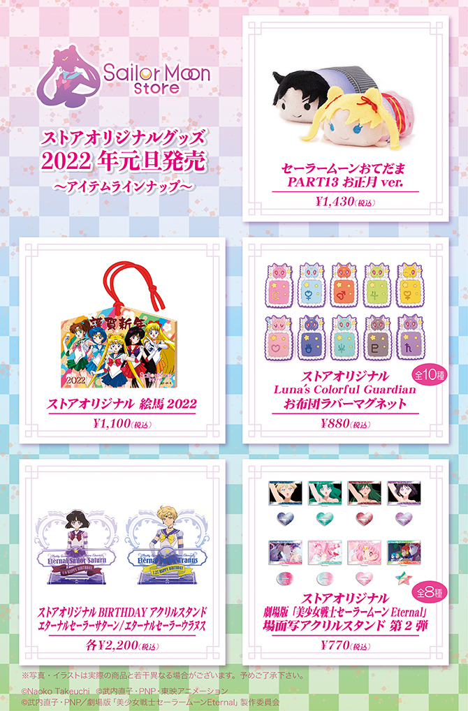 Zapowiedziano kilka gadżetów z okazji Nowego Roku, które w styczniu 2022 pojawią się we wszystkich trzech wersjach Sailor Moon Store.