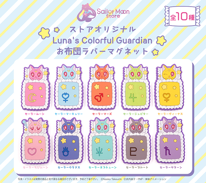 We wszystkich odsłonach Sailor Moon Store pojawią się gumowe magnesy z Luną śpiącą w futonie. Do uzbierania jest 10 wersji kolorystycznych ze znakami planet poszczególnych wojowniczek. Sprzedawane będą losowo. Cena to 880 jenów za sztukę (ok. 31 zł), a w sprzedaży pojawią się w styczniu.