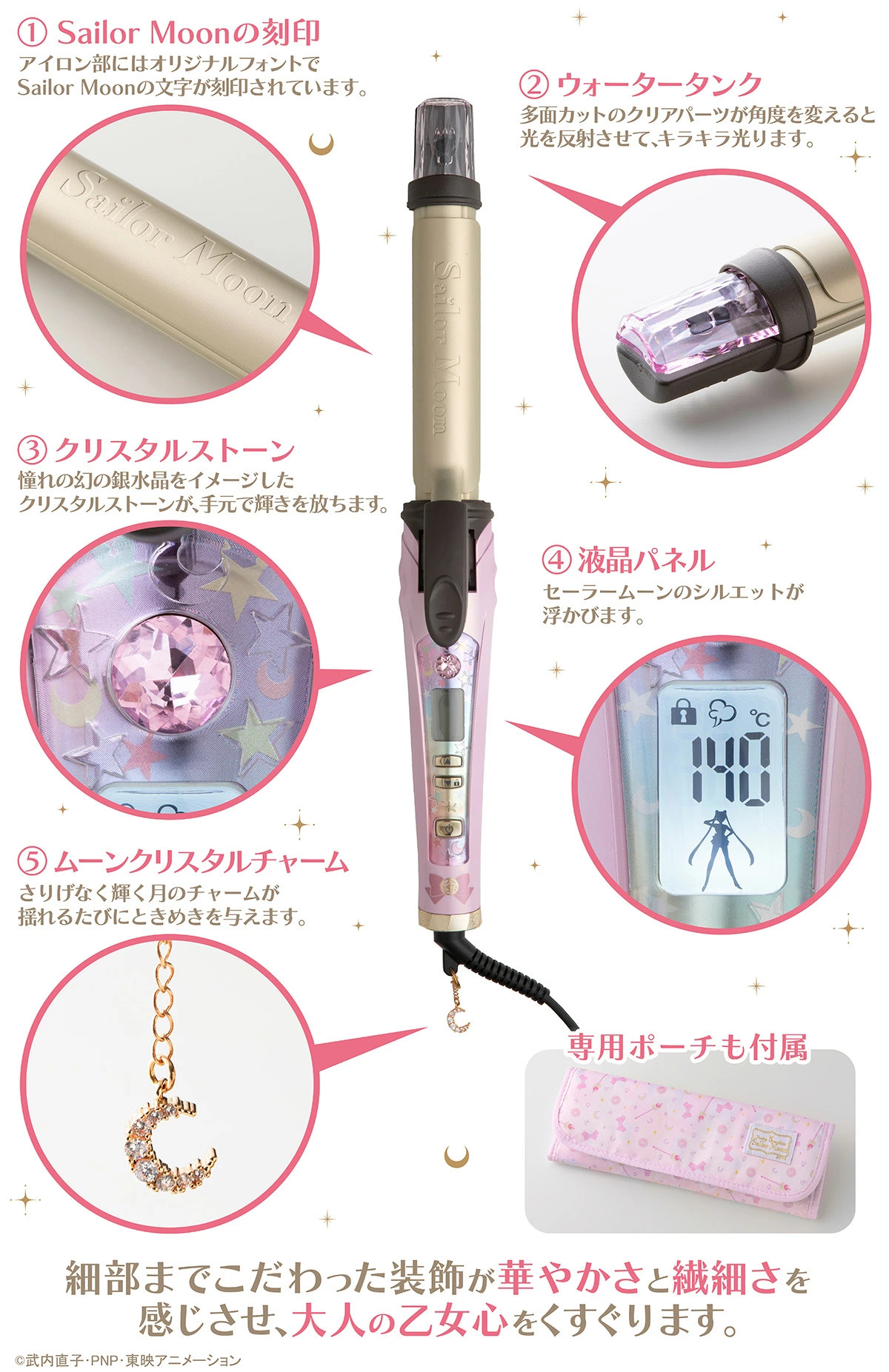 Również we współpracy z firmą Tescom pojawi się lokówko-prostownica do włosów. Uchwyt pomalowany jest perłową farbą, a przy kablu jest zawieszka z półksiężycem z kryształkami. W końcówce znajduje się przezroczysty zbiorniczek na wodę. W zestawie jest pokrowiec z materiału odpornego na temperaturę. Urządzenie ma 11 trybów temperaturowych w zakresie od 100 do 200 stopni. Cena to 12 980 jenów (ok. 467 zł). W sprzedaży dostępne jest od 10 grudnia w oficjalnym sklepie Tescom w serwisie Rakuten.