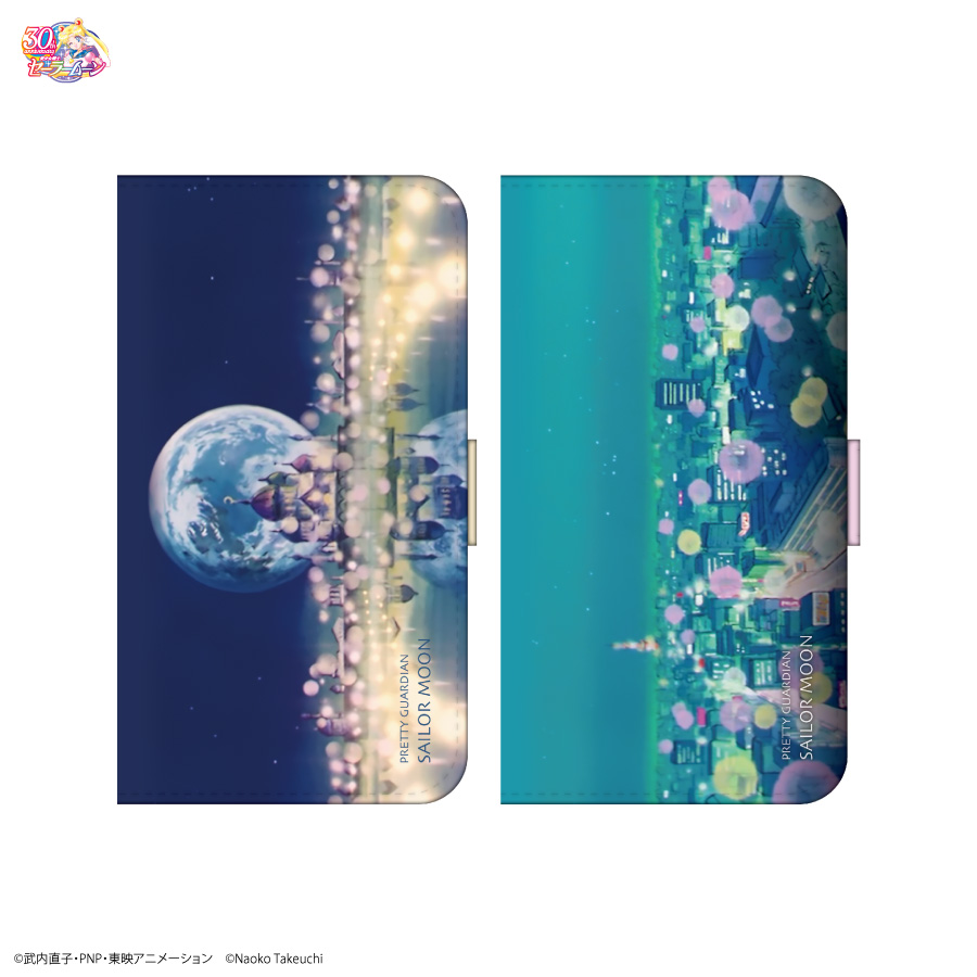 Character Flip Cover M+ - uniwersalne etui książkowe; wewnątrz przegródki na karty; mieści smartfony nieprzekraczające wymiarów 150 x 75 x 10 mm; do wyboru dwa wzory: z Księżycowym Pałacem oraz z widokiem na dzielnicę Juuban; 4268 jenów (ok. 151 zł) za