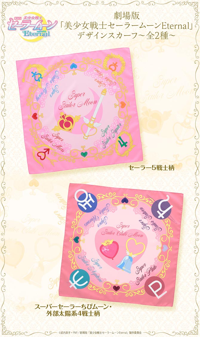 Zapowiedziano dwie apaszki, obie w różowych kolorach. Jedna inspirowana jest inner senshi, a druga outer senshi i Chibi Moon. Wielkość to 50 x 50 cm. Przedsprzedaż rozpoczyna się dzisiaj, a wysyłka nastąpi w marcu. Cena za sztukę to 4136 jenów (ok. 144