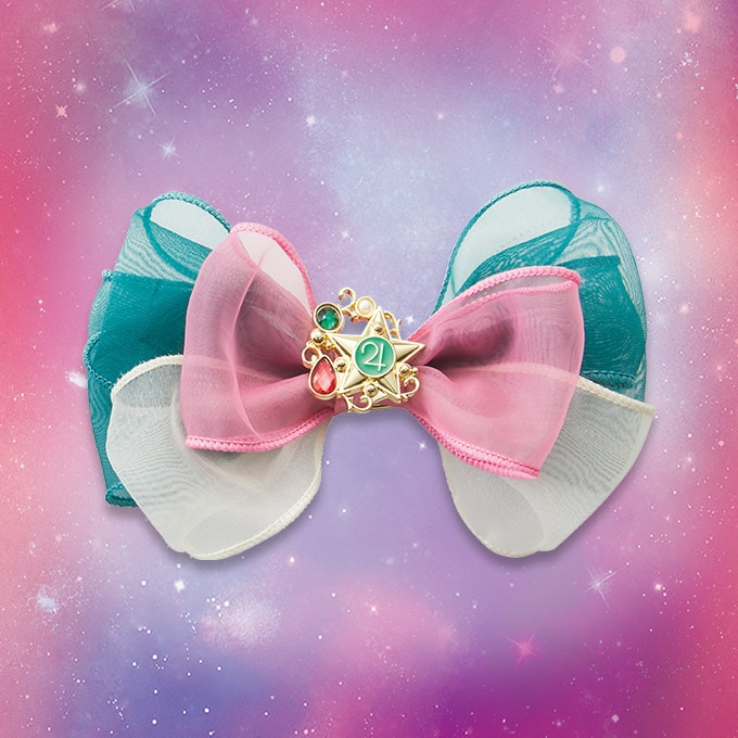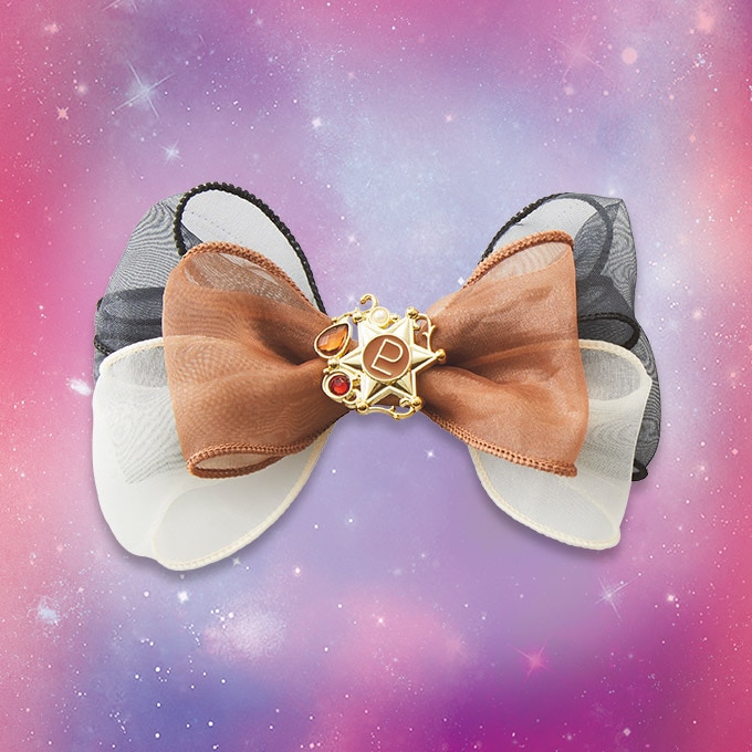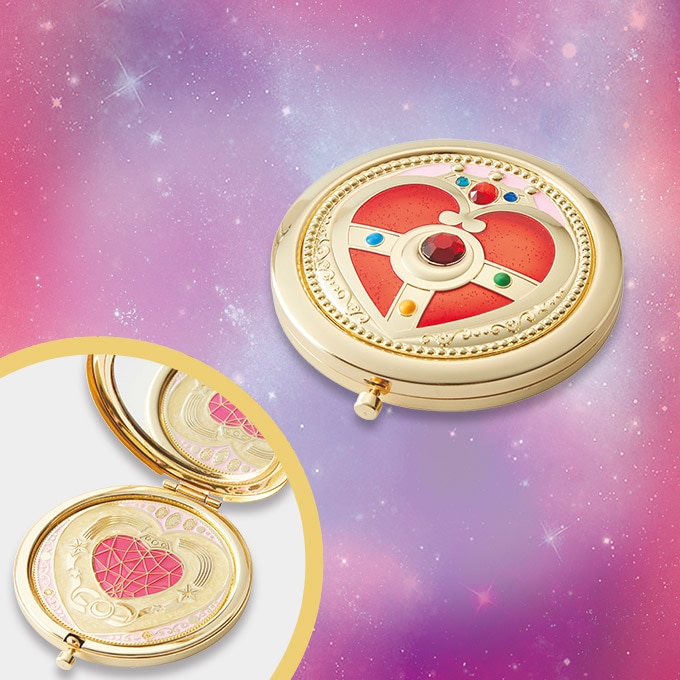 Ribbon Hair Clip - spinki do włosów z kokardami; do wyboru 10 wzorów, każdy w kolorystyce inne wojowniczki; 2000 jenów (ok. 71 zł) za sztukę. Compact Mirror - otwierane lusterko; na wieczku i w środku motyw broszki Cosmic