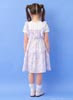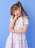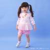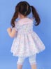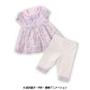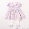 Zestaw tunika z legginsami - tunika uszyta z tego samego materiału, co sukienka powyżej; legginsy są w jasnym kolorze z fioletowymi falbankami na nogawkach; dostępne rozmiary to 80/90 cm; 18 480 jenów za zestaw (ok. 657 zł).