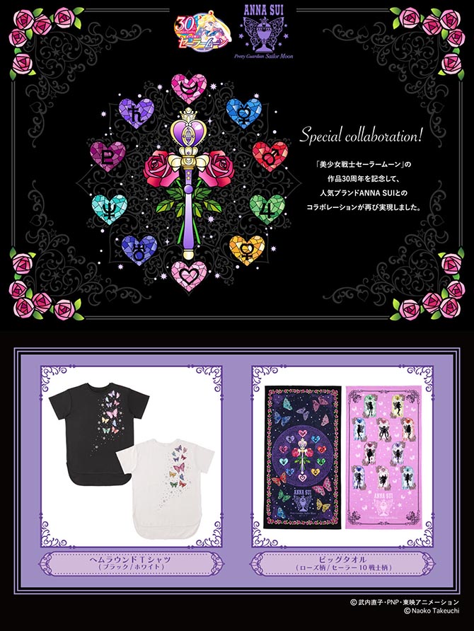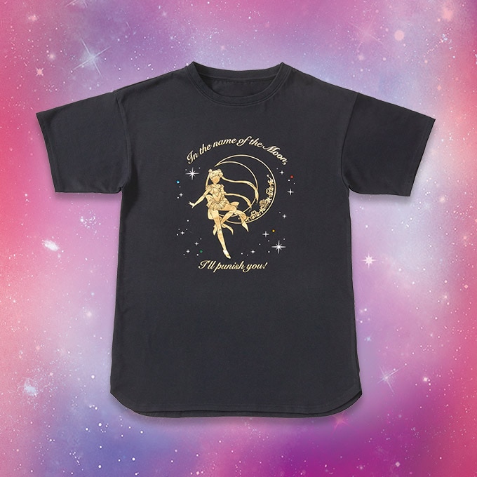Koszulki - z sylwetką Super Sailor Moon; do wyboru czarna lub różowa; 3900 jenów (ok. 136 zł) za sztukę.