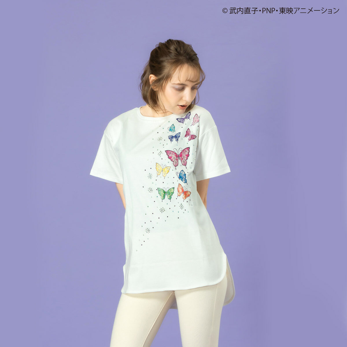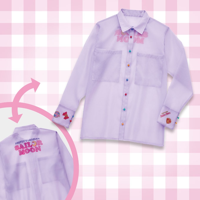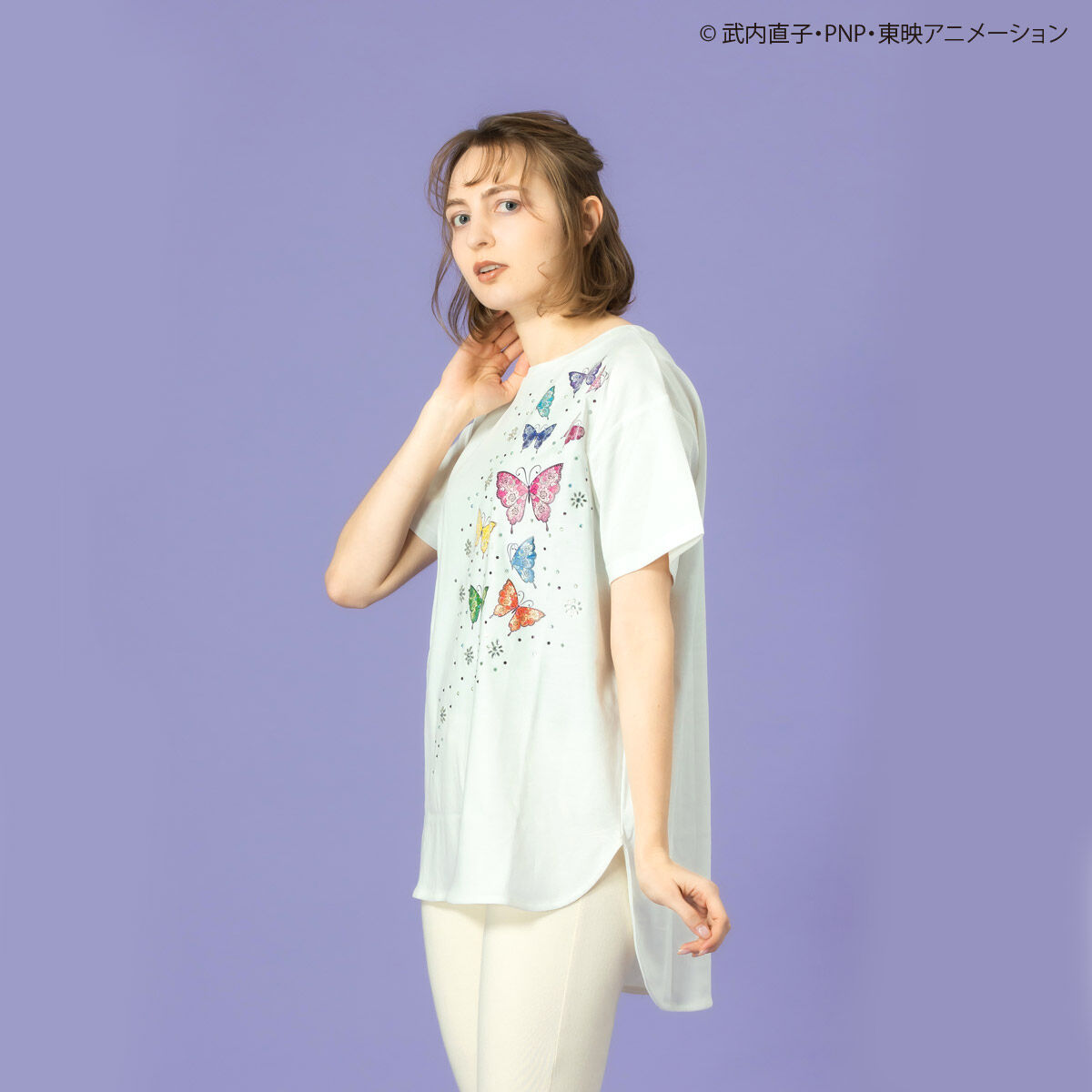 - biała z fioletową obramówką przy szyi i falbanką u dołu; z przodu nadruk z magicznymi przedmiotami, a z tyłu z inner senshi; 3800 jenów (ok. 132 zł).