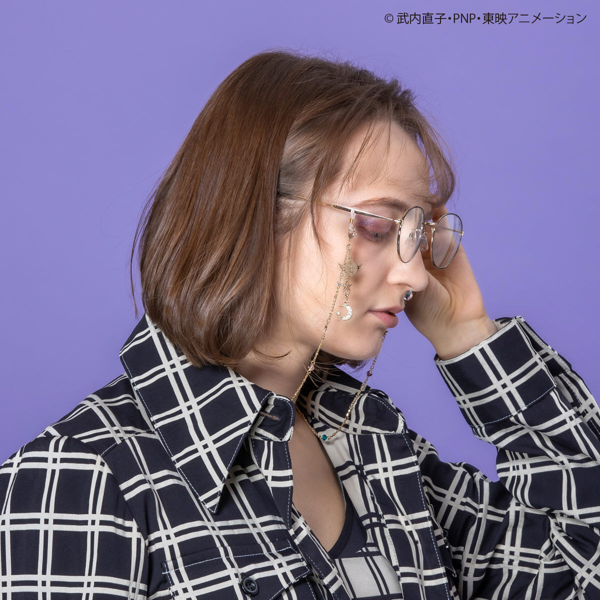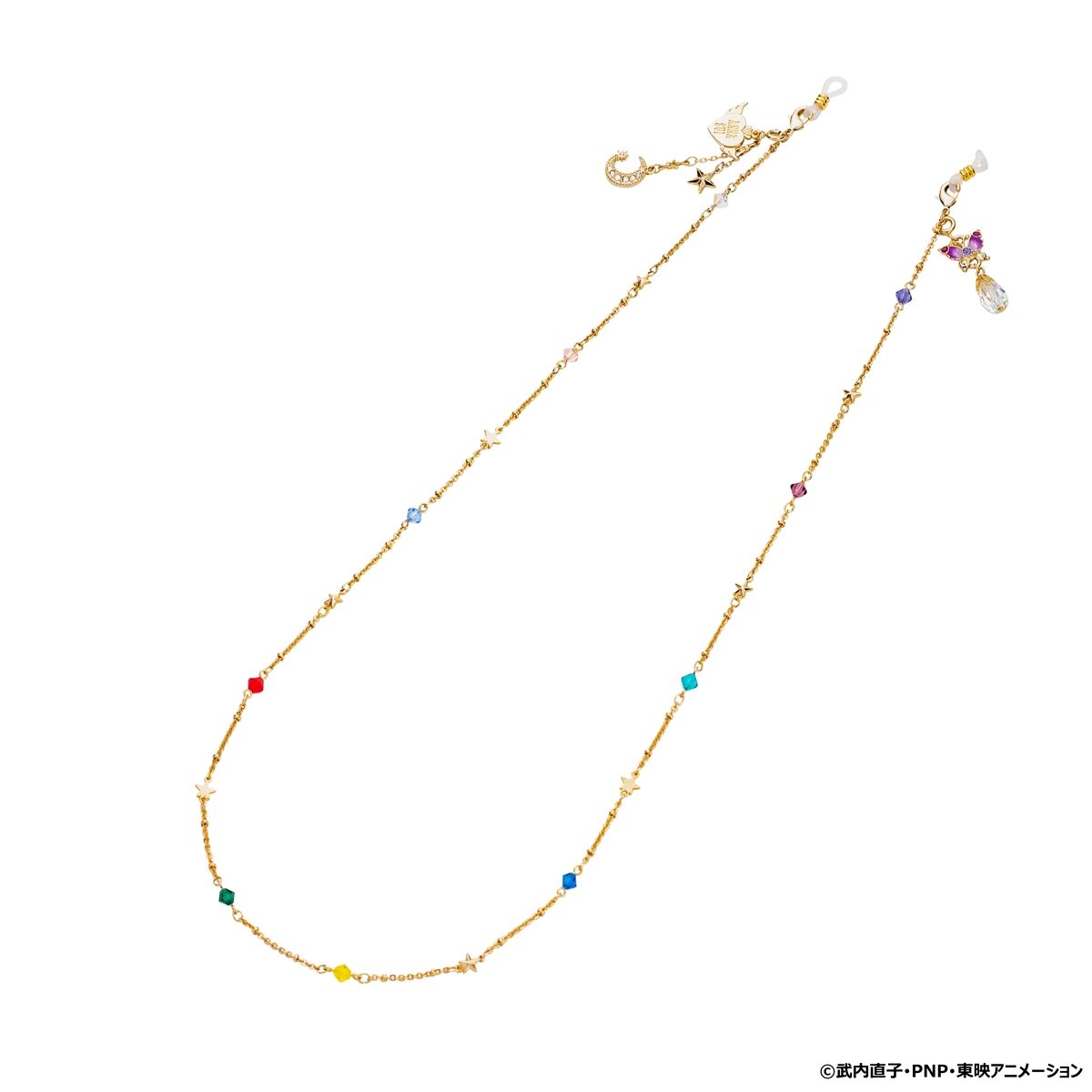 do okularów - ze wkomponowanymi kryształkami w kolorach 10 wojowniczek; przy uchwytach na okulary znajdują się zawieszki z kryształkiem i półksiężycem; uchwyty do okularów można odpiąć i nosić łańcuszek jako biżuterię; łańcuszek ma