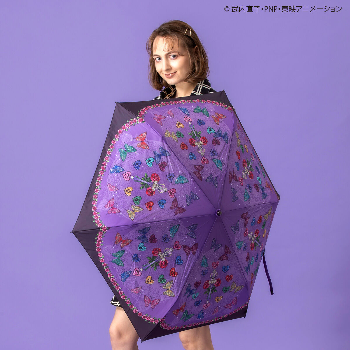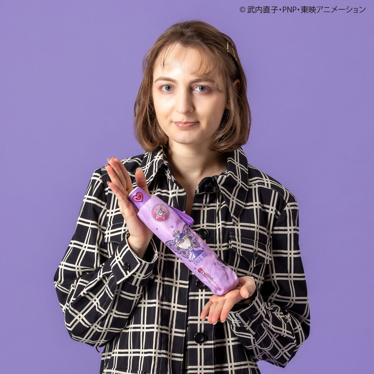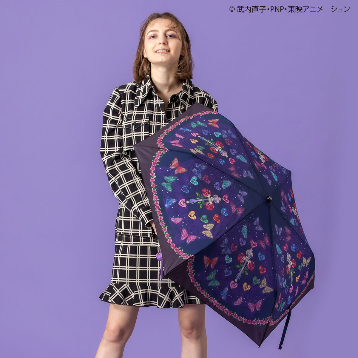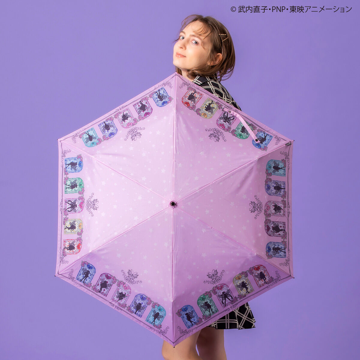 Parasolka - z magicznymi przedmiotami na materiale oraz broszką Cosmic Heart Compact na rączce; 4500 jenów (ok. 157 zł).