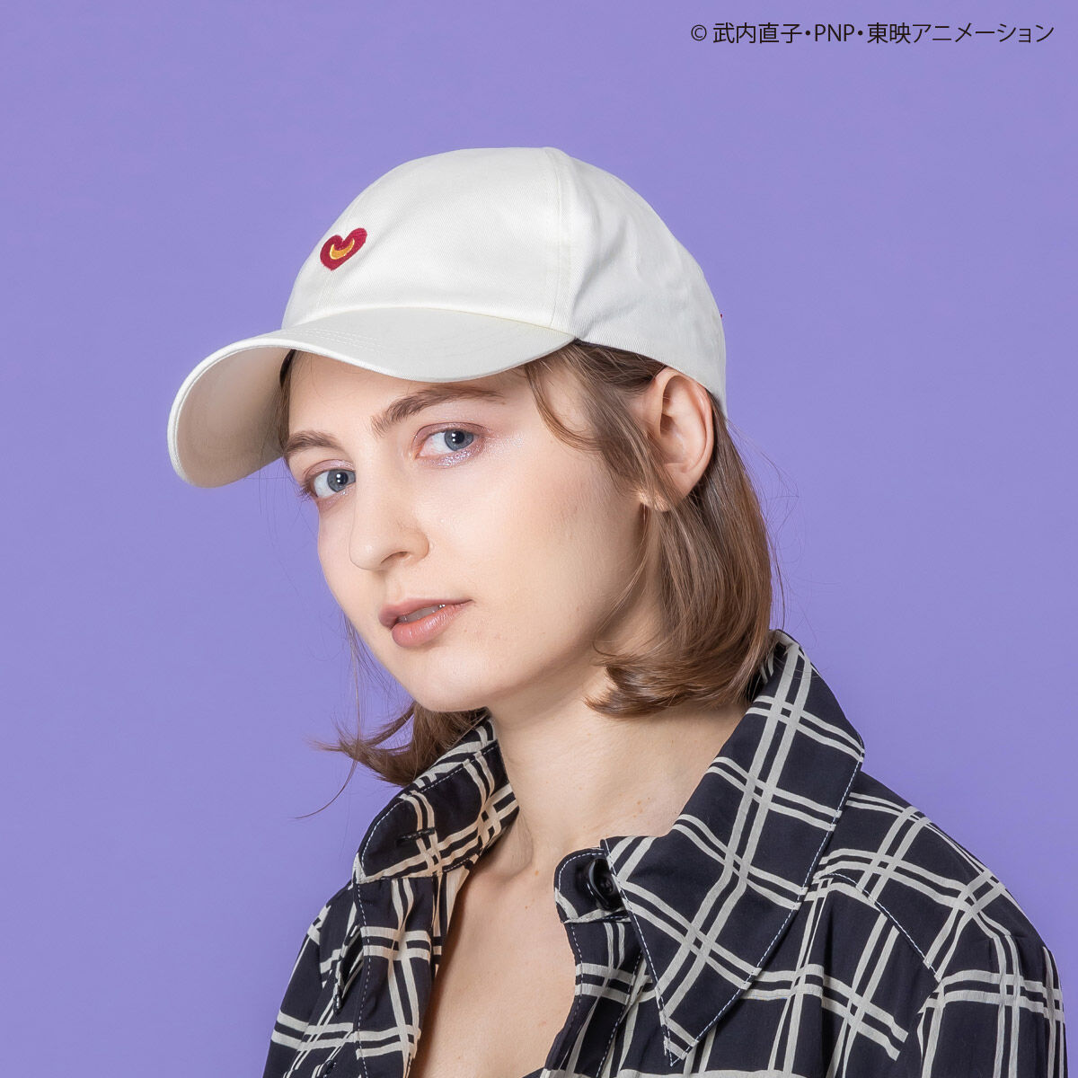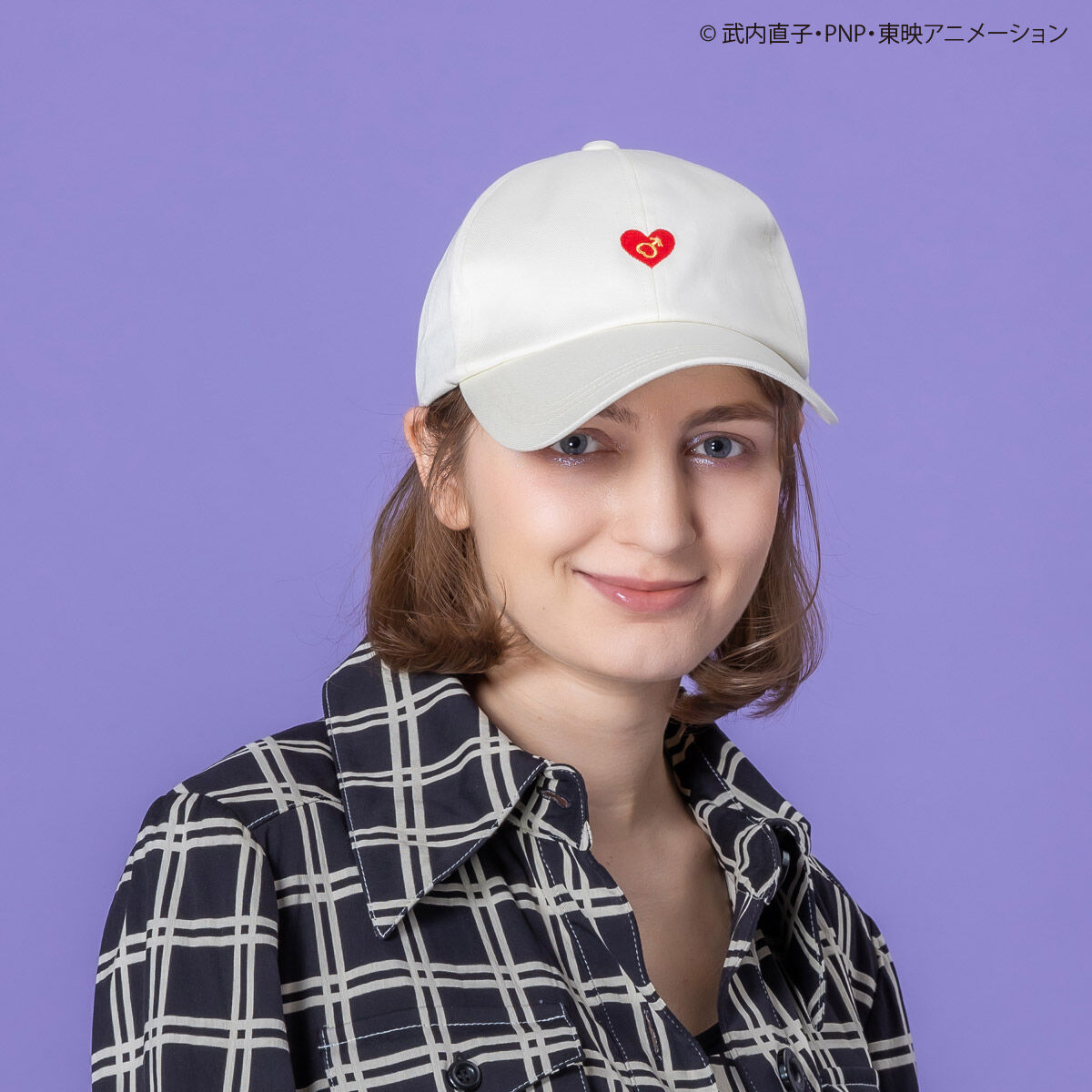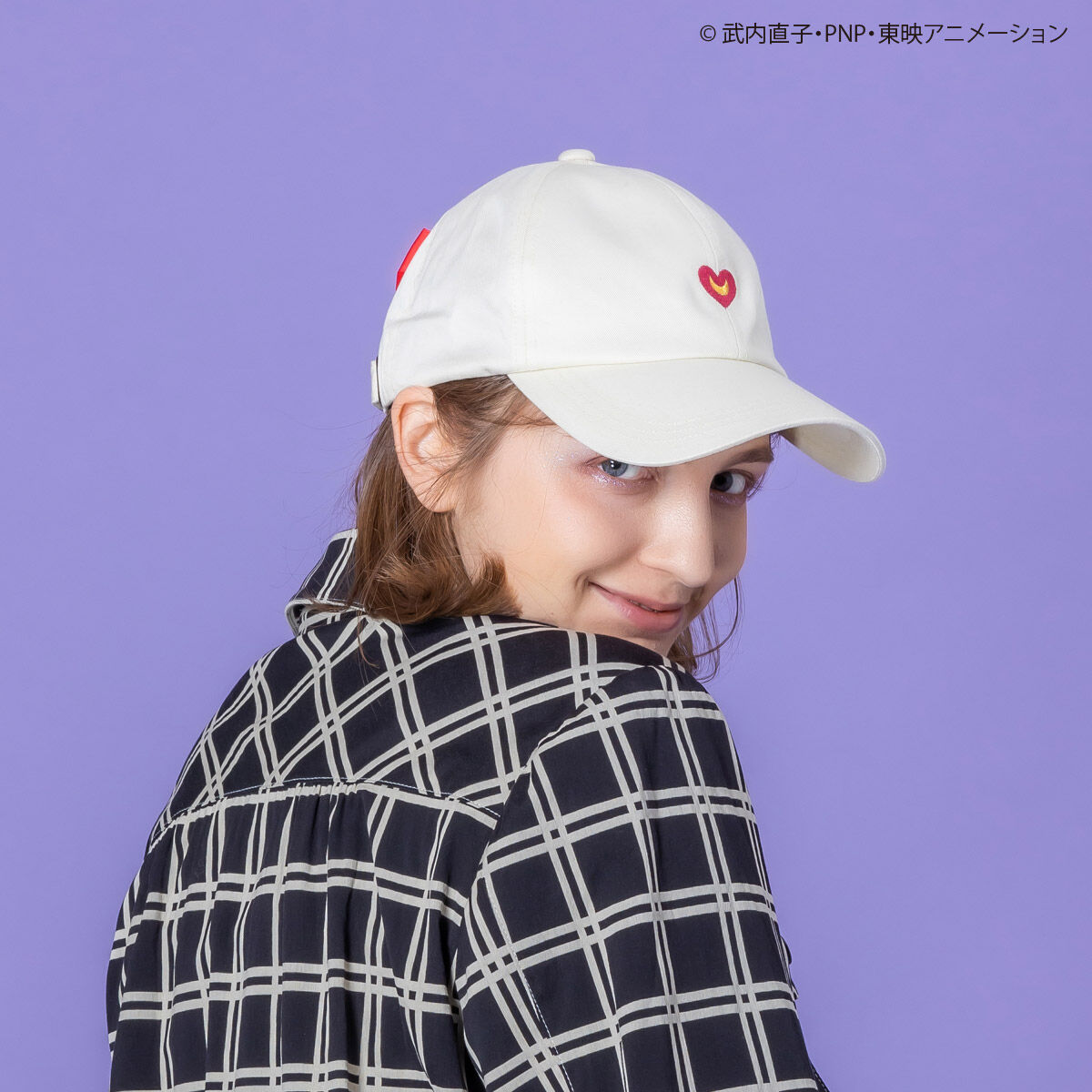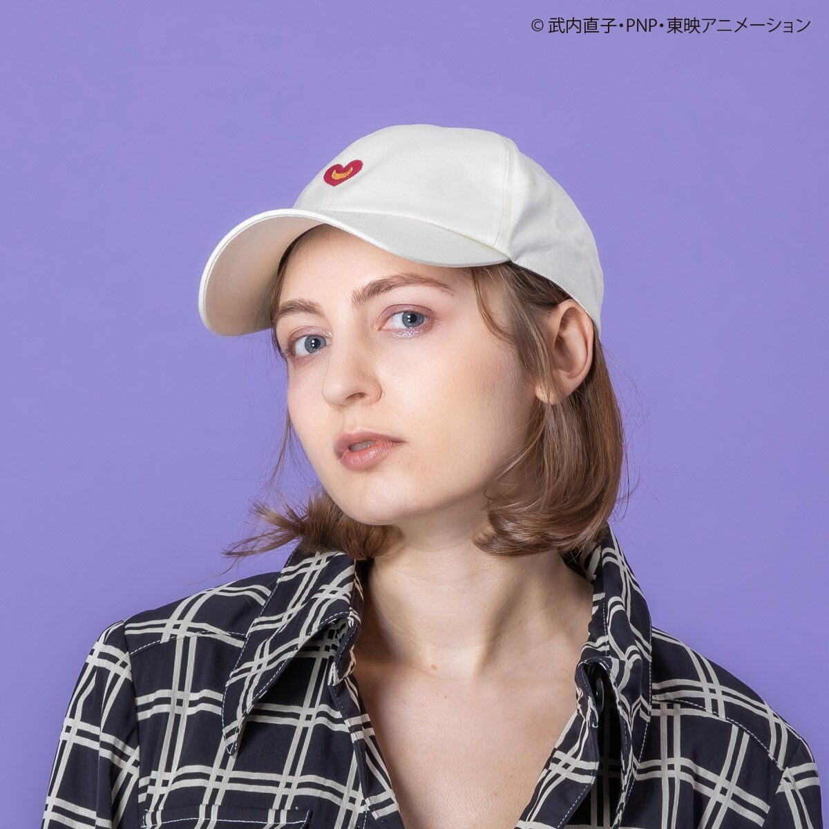 Czapki z daszkiem z motywami w kolorach inner senshi - do wybory 5 wersji kolorystycznych, każda w kolorze innej inner senshi; czapki są białe, z przodu znajduje się serduszko ze