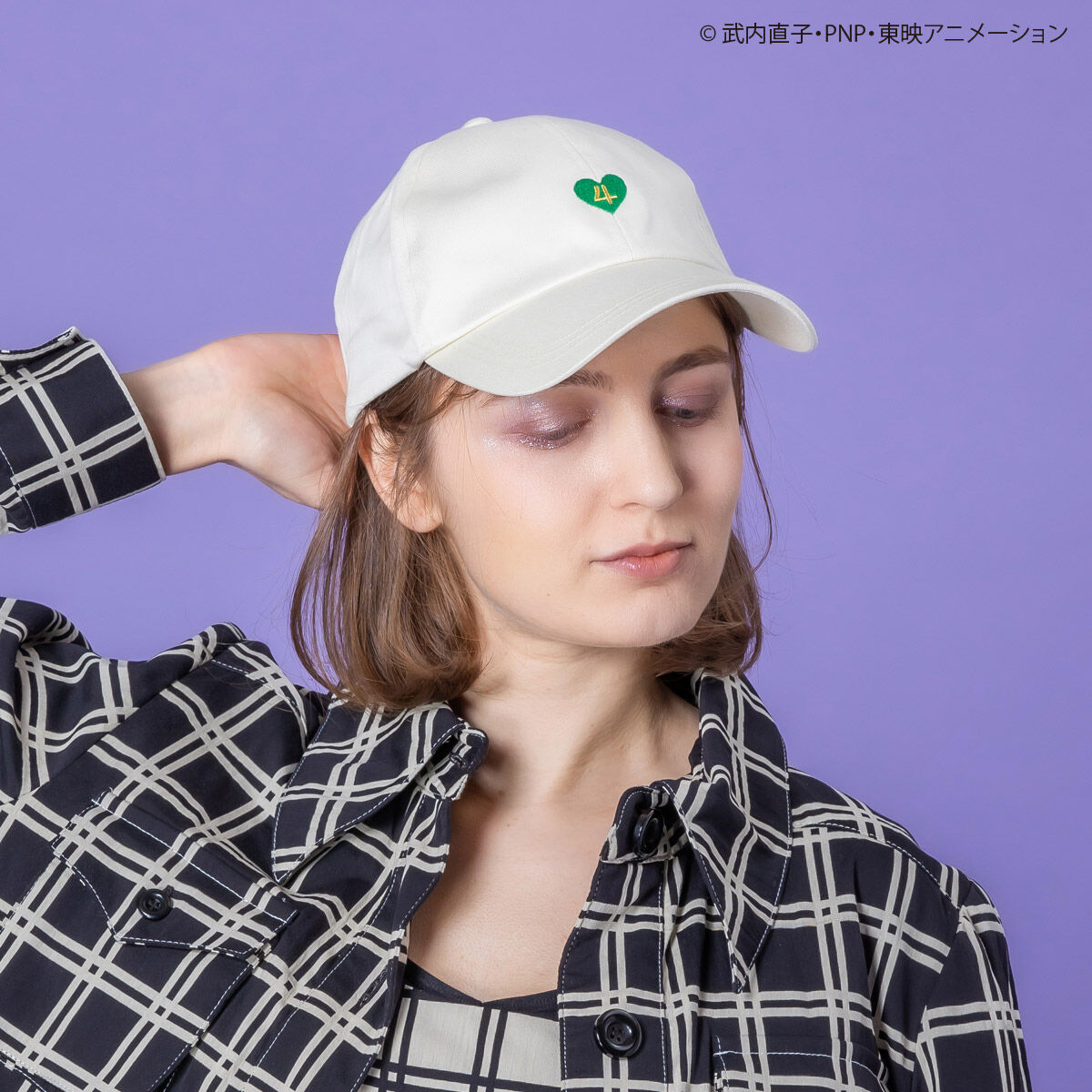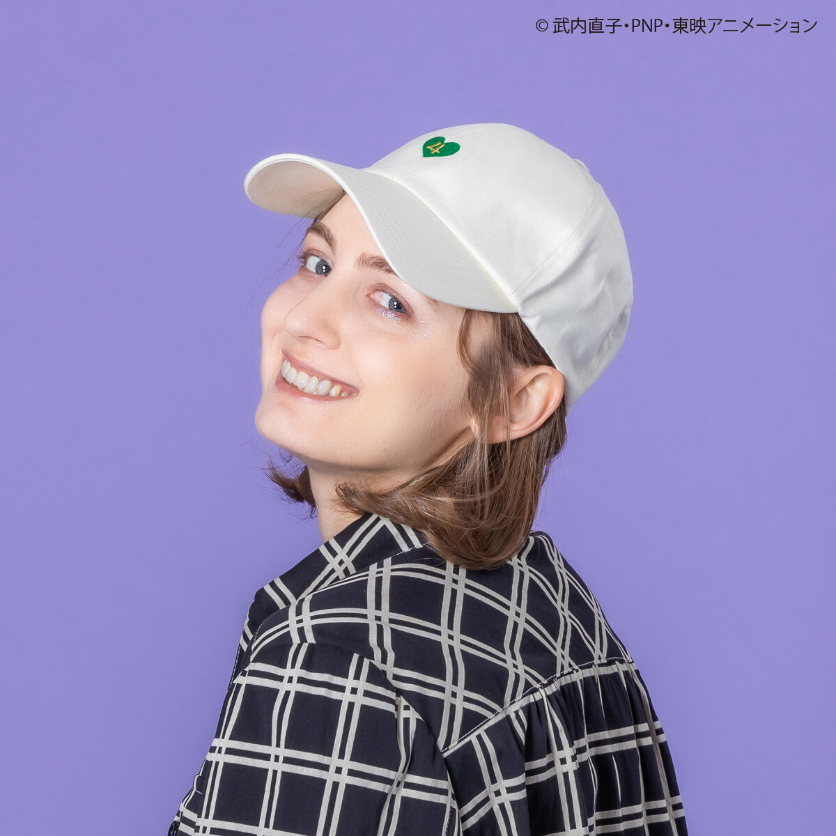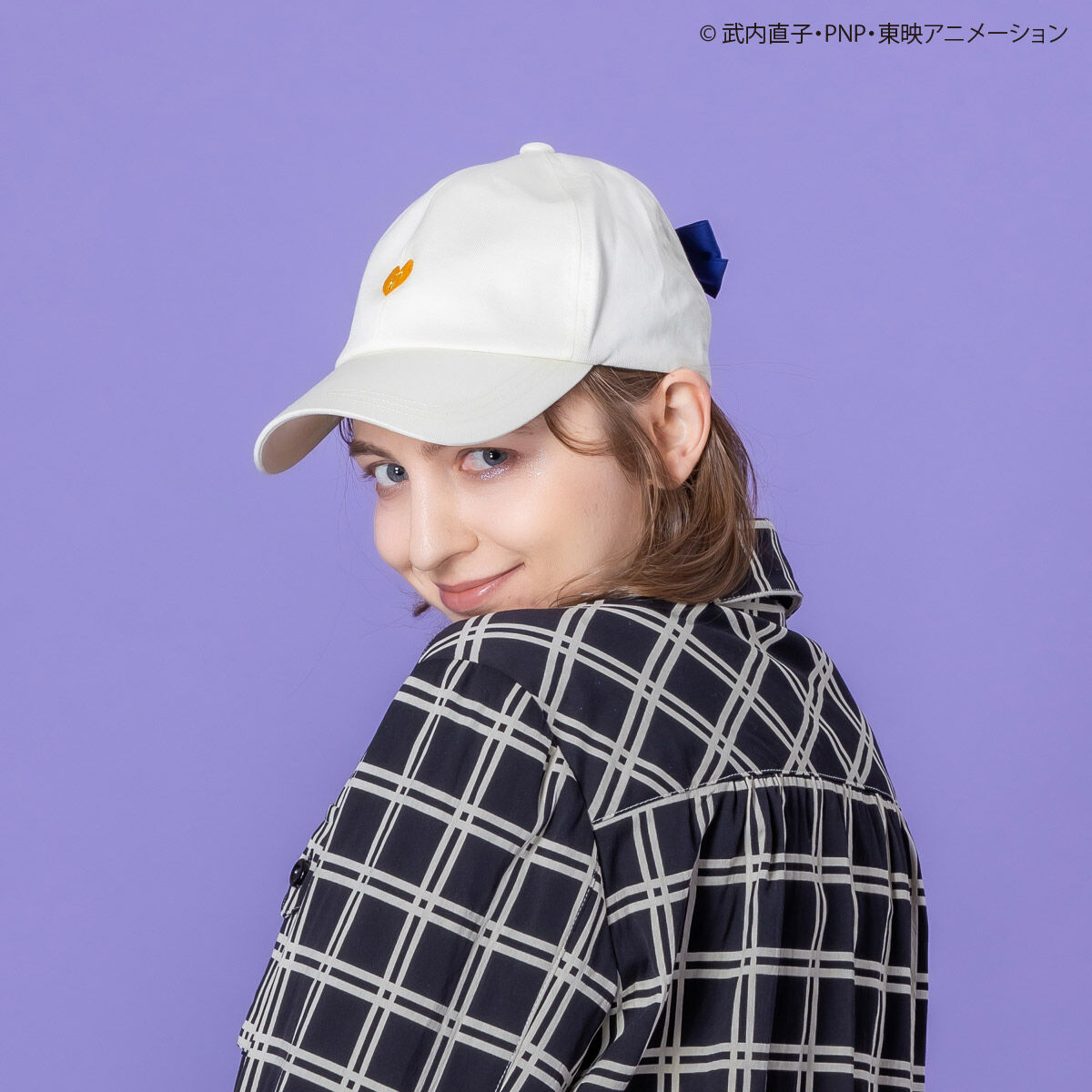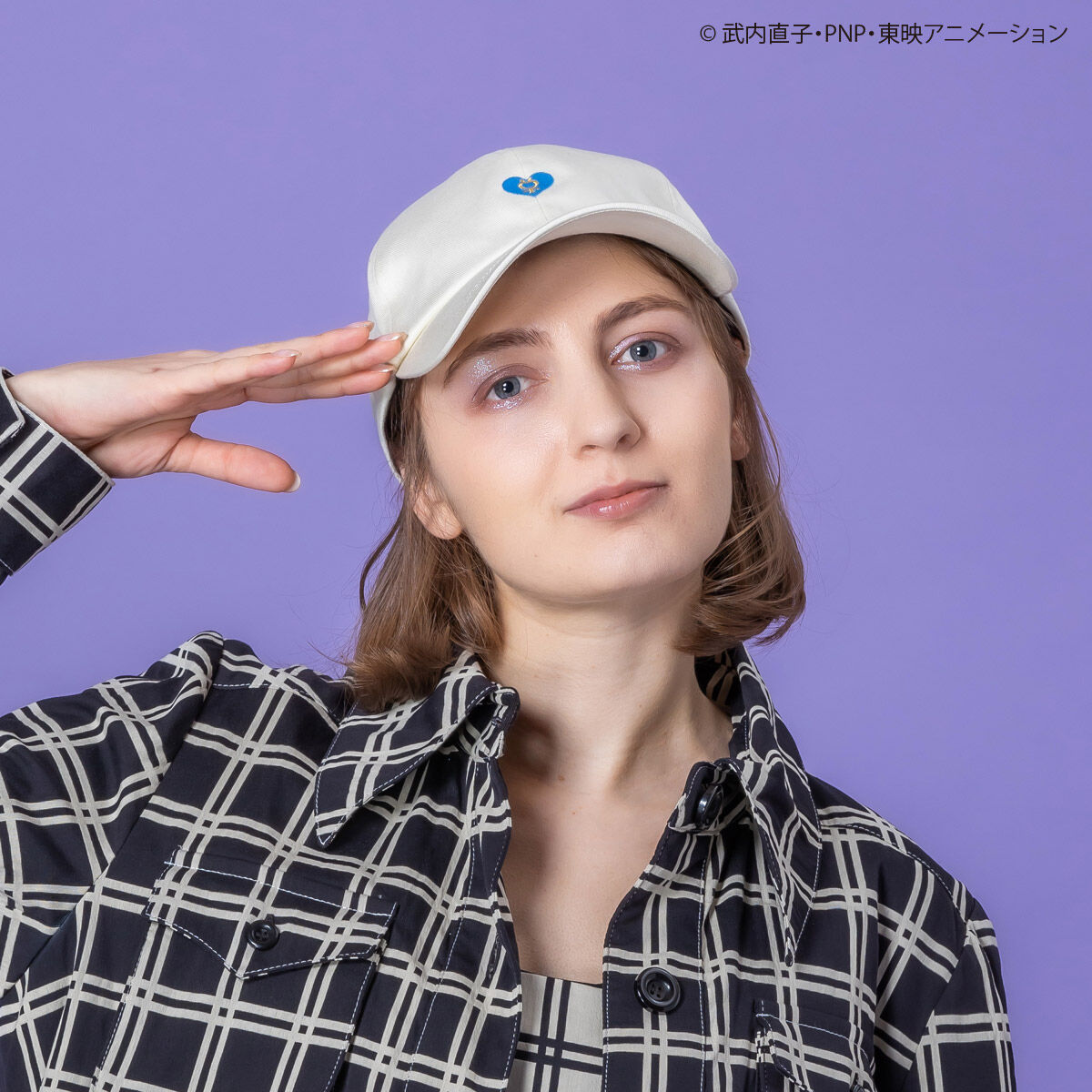 Czapki z daszkiem z motywami w kolorach inner senshi - do wybory 5 wersji kolorystycznych, każda w kolorze innej inner senshi; czapki są białe, z przodu znajduje się serduszko ze