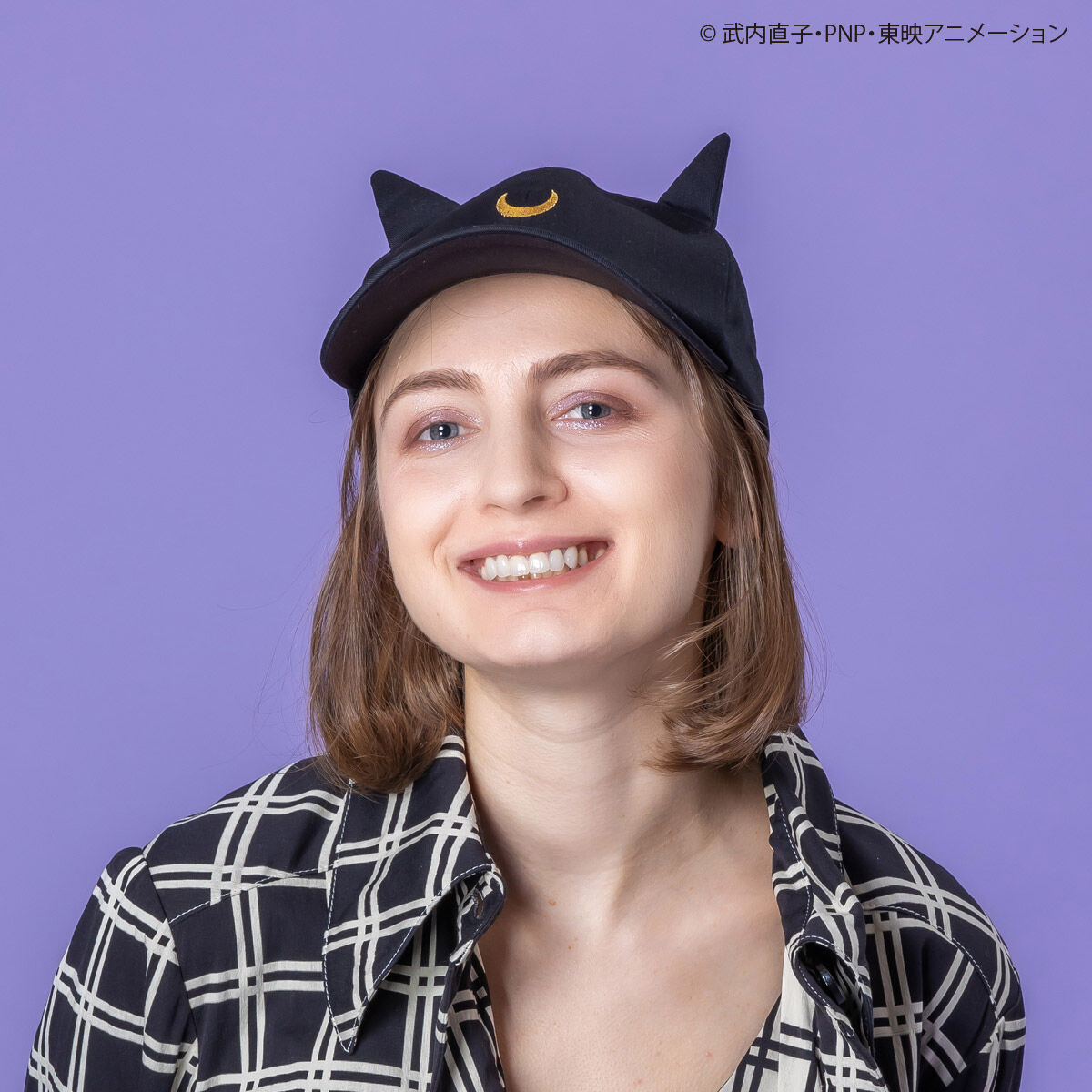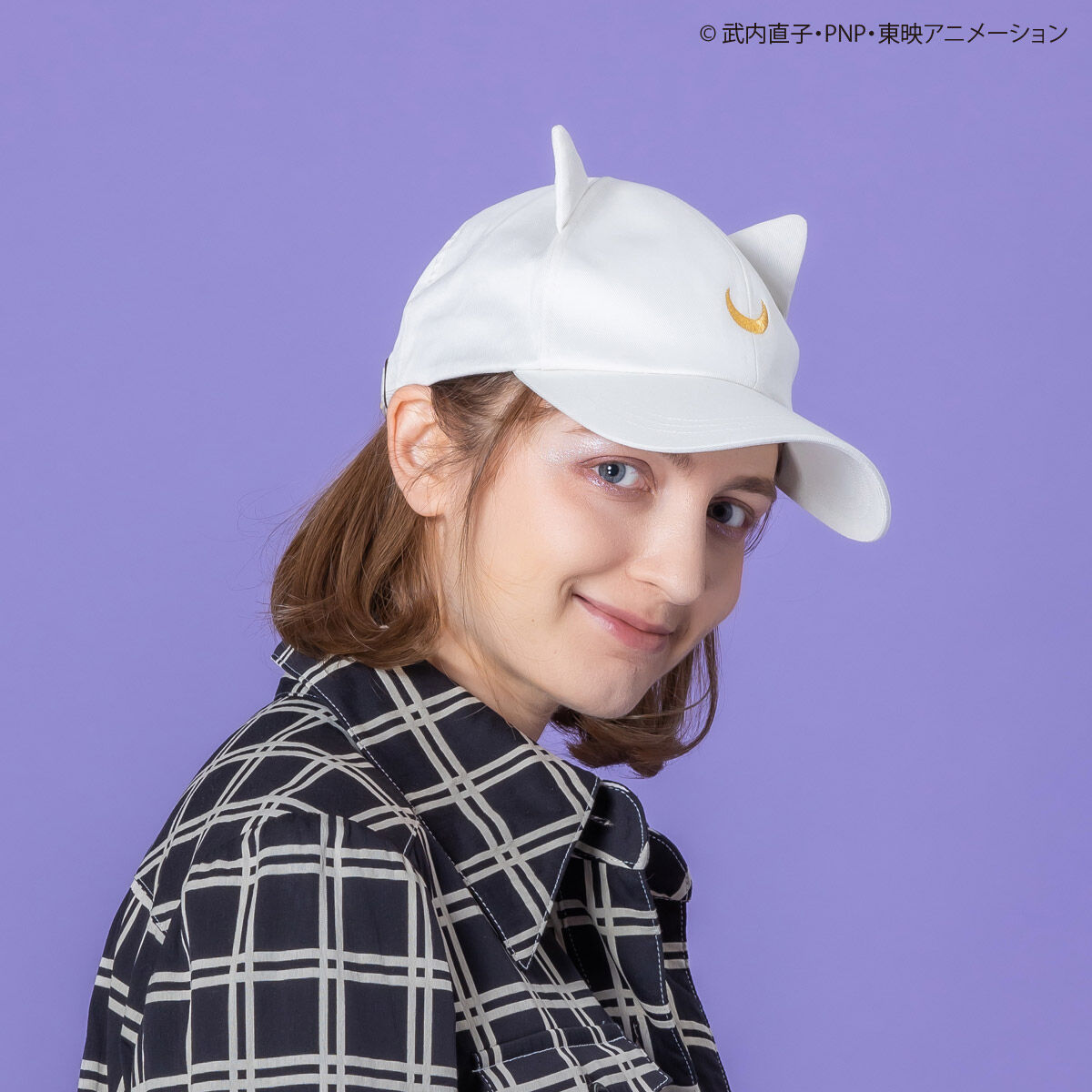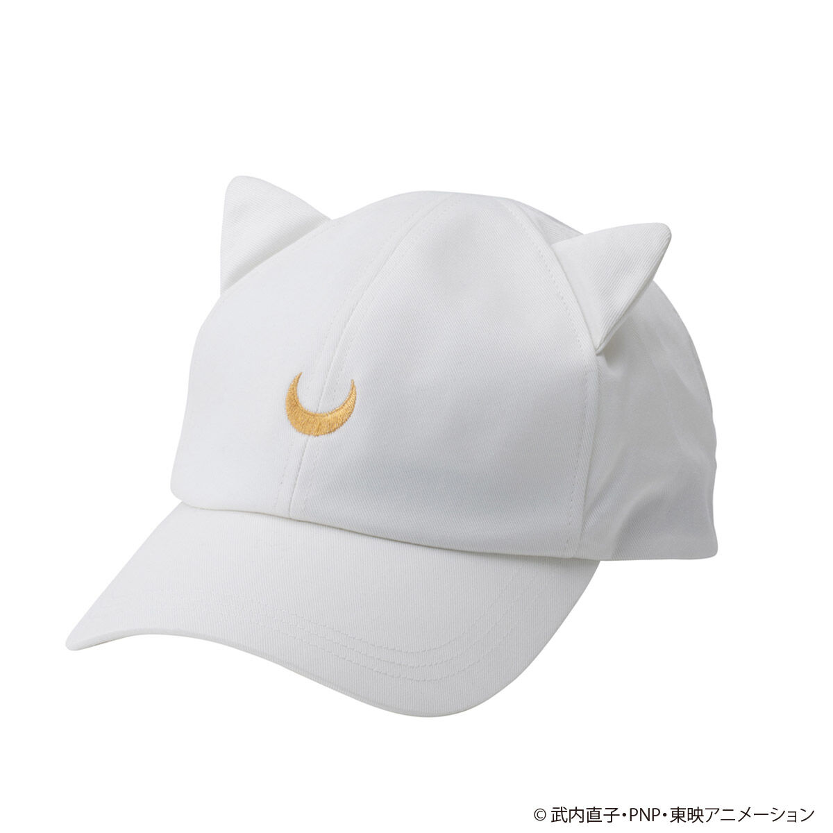 Czapki z daszkiem z kocimi uszami - inspirowane Luną i Artemisem; w kolorach białym lub czarnym; z przodu półksiężyc;