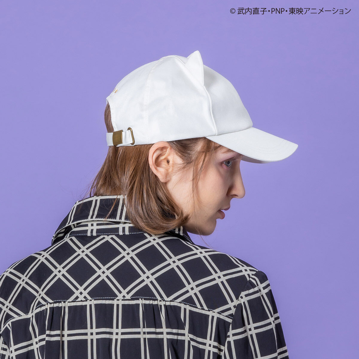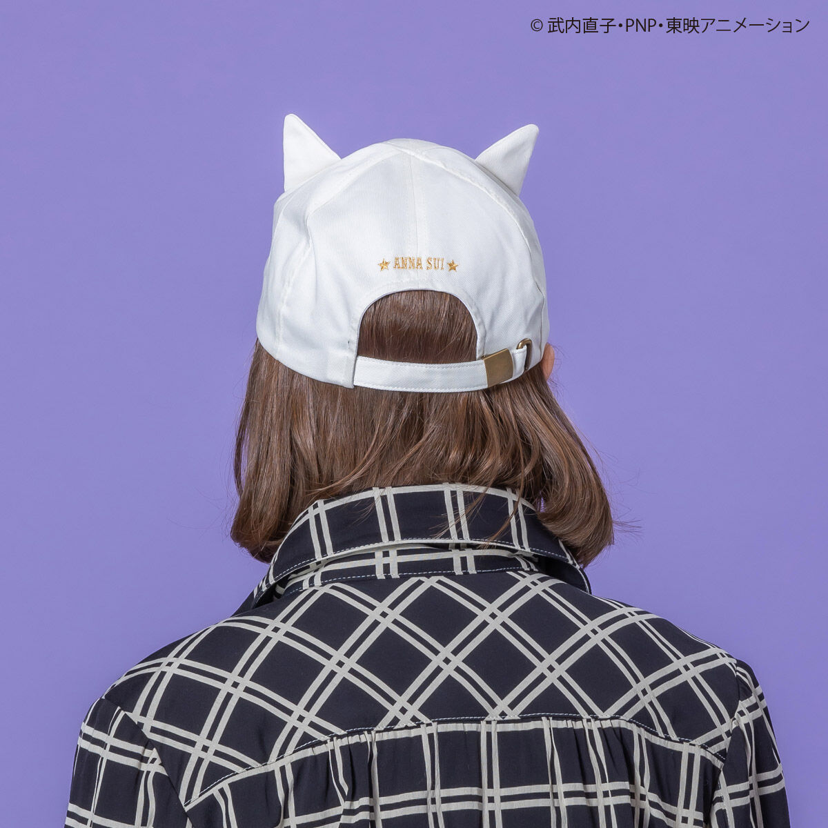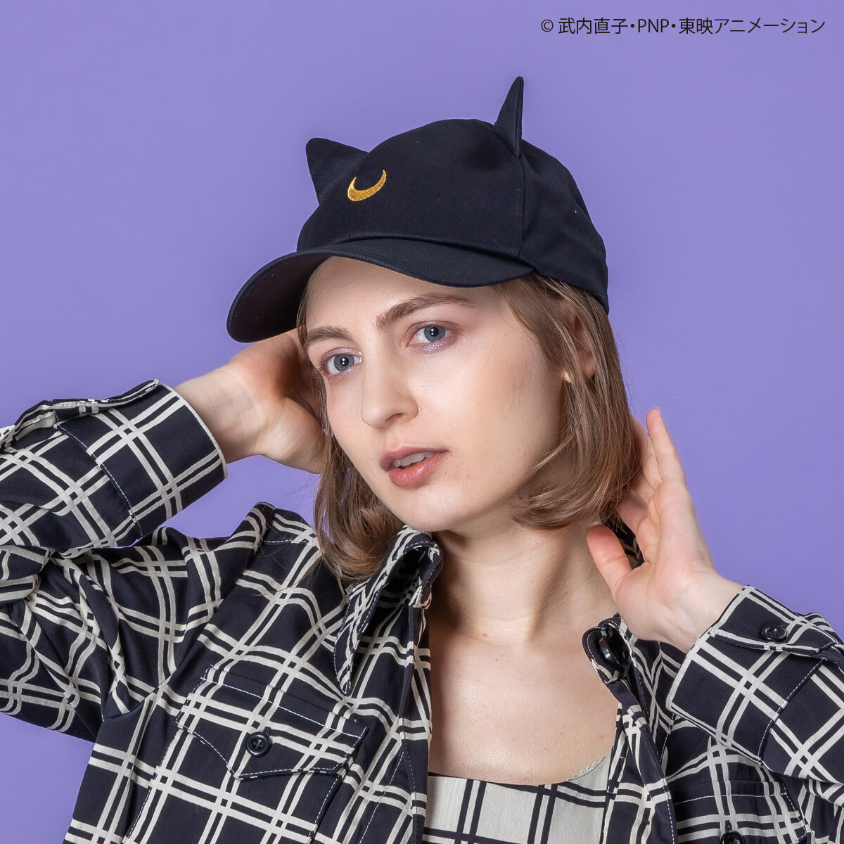 Czapki z daszkiem z kocimi uszami - inspirowane Luną i Artemisem; w kolorach białym lub czarnym; z przodu półksiężyc;
