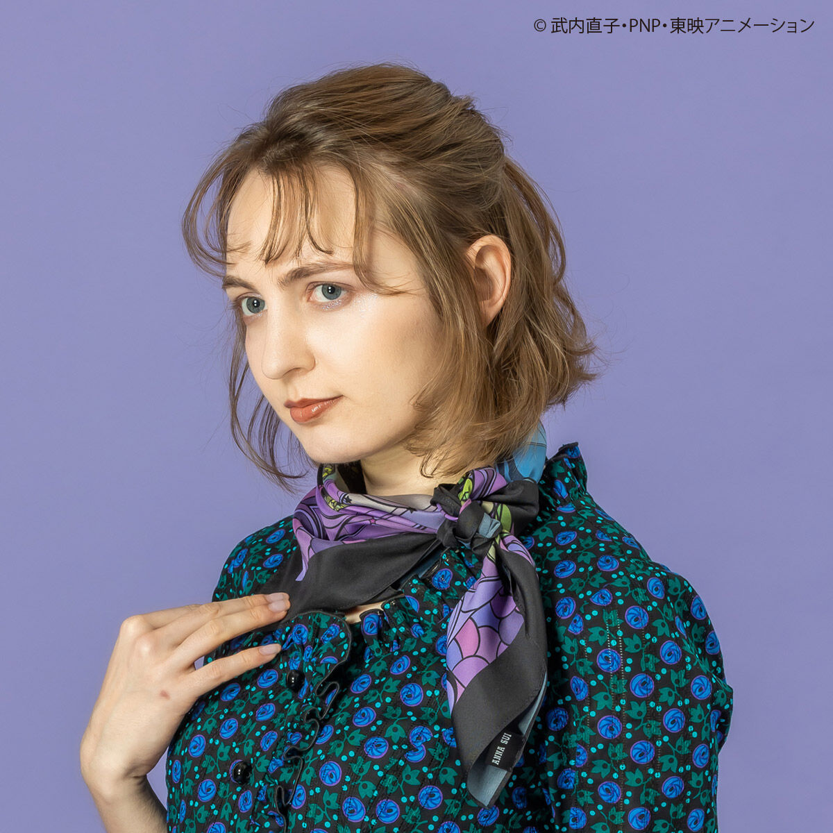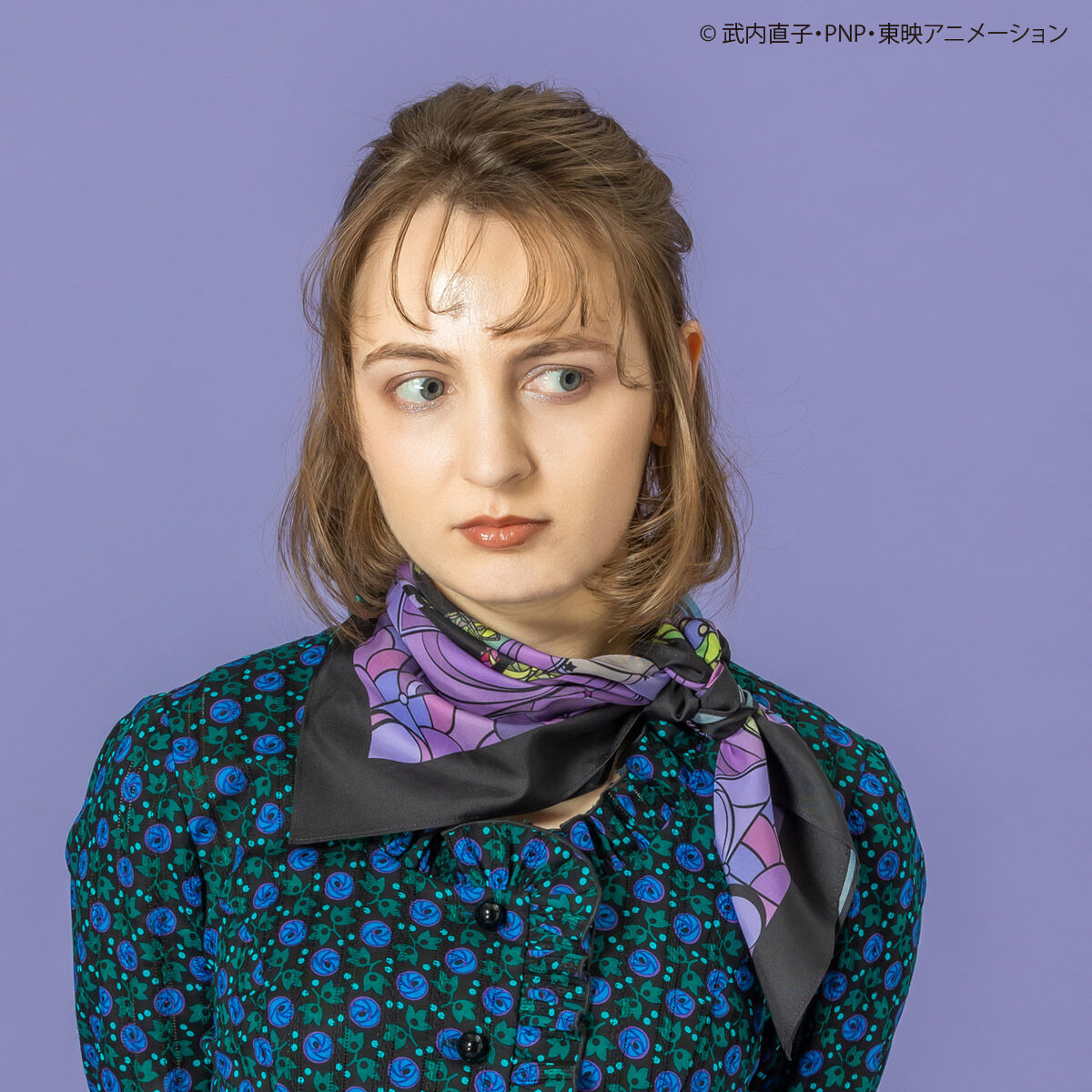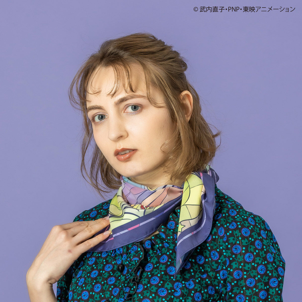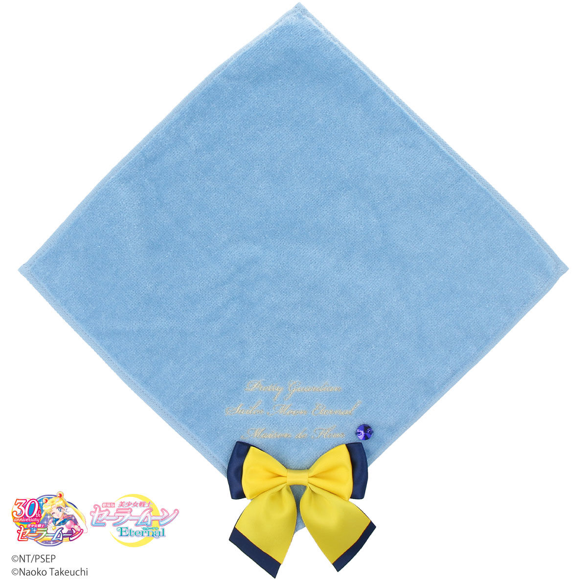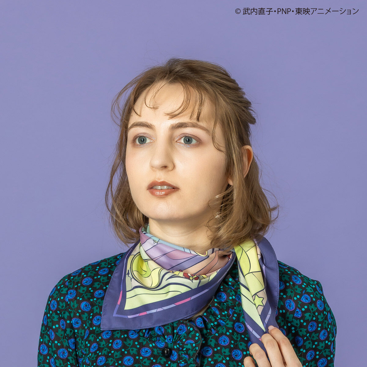 Chusteczki z nadrukiem - do wyboru 3 wzory: ze Spiral Heart Moon Rod, z magicznymi przedmiotami oraz z sylwetkami wojowniczek; wymiary to 58 x 58 cm; 2200 jenów za sztukę (ok. 75 zł).
