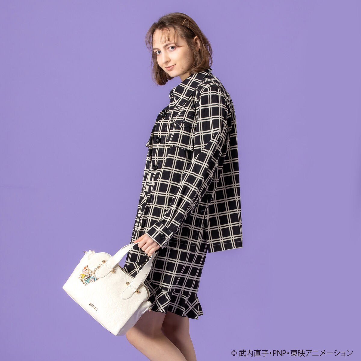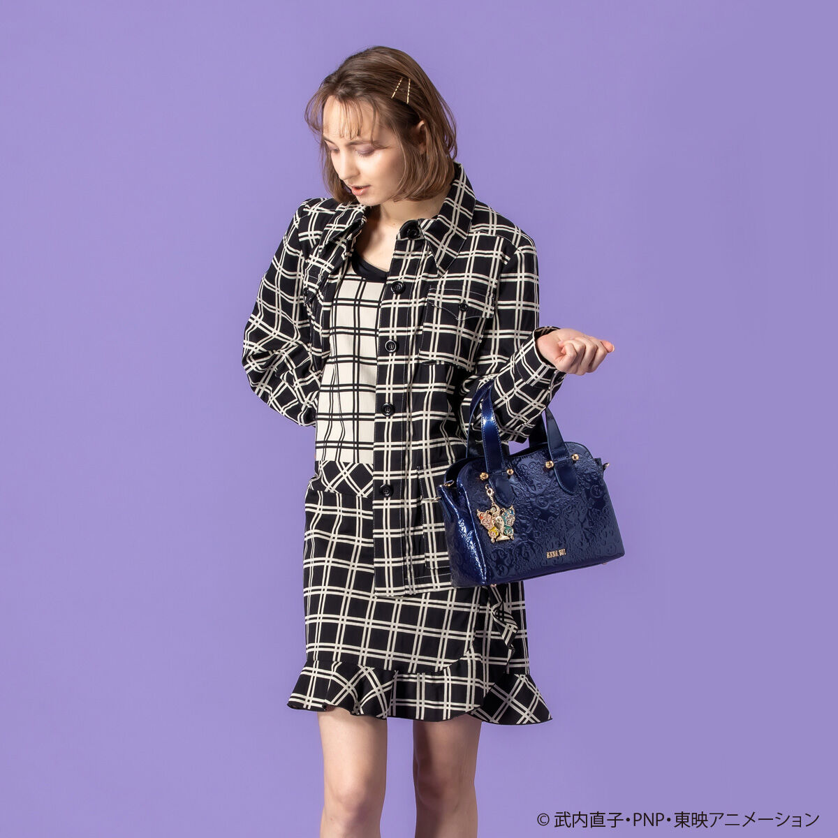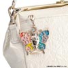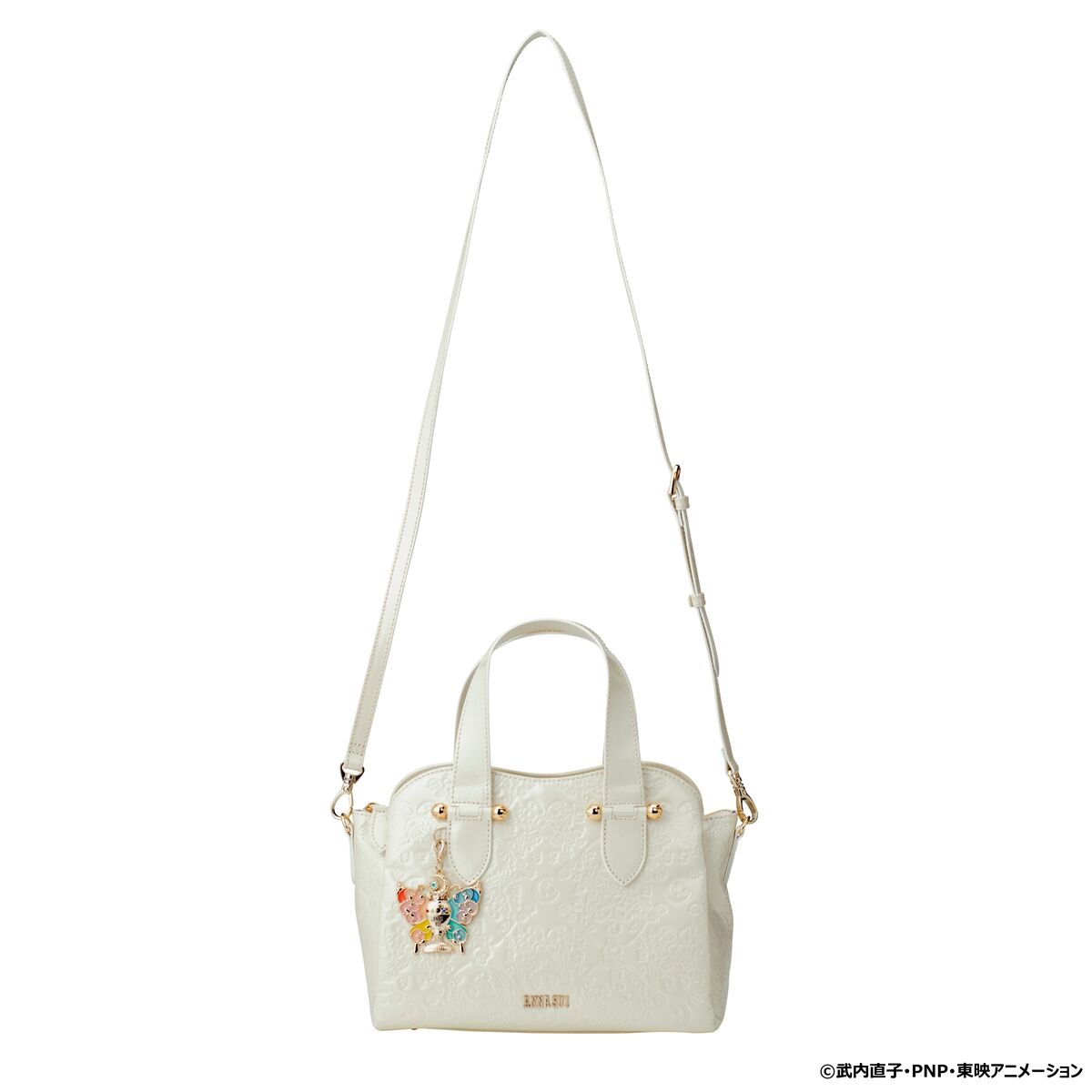 Torebka do ręki z paskiem na ramię - do wyboru granatowa lub biała; ze sztucznej lakierowanej skóry; z wytłoczeniami; 3 komory; w komplecie zawieszka z Rainbow Moon Chalice ze skrzydłami motyla; wymiary to 30 x 20 x 10 cm; 30 800 jenów za sztukę (ok.