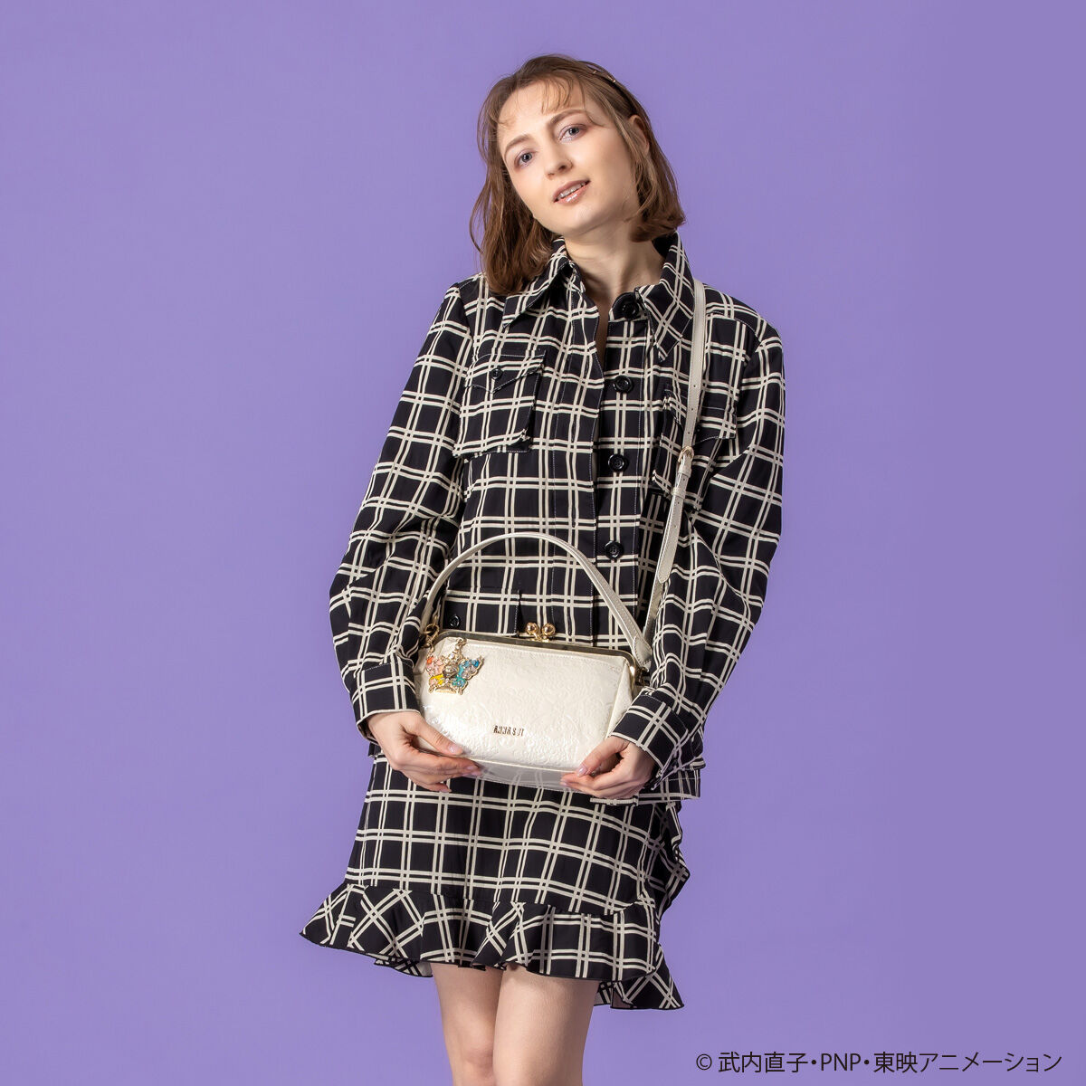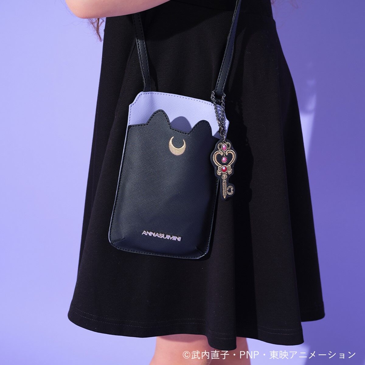 Mini torebka - inspirowana Luną; z paskiem na ramię oraz zawieszką z Kluczem Czasoprzestrzeni; wymiary to 18 x 10 cm; 7590 jenów (ok. 259 zł).