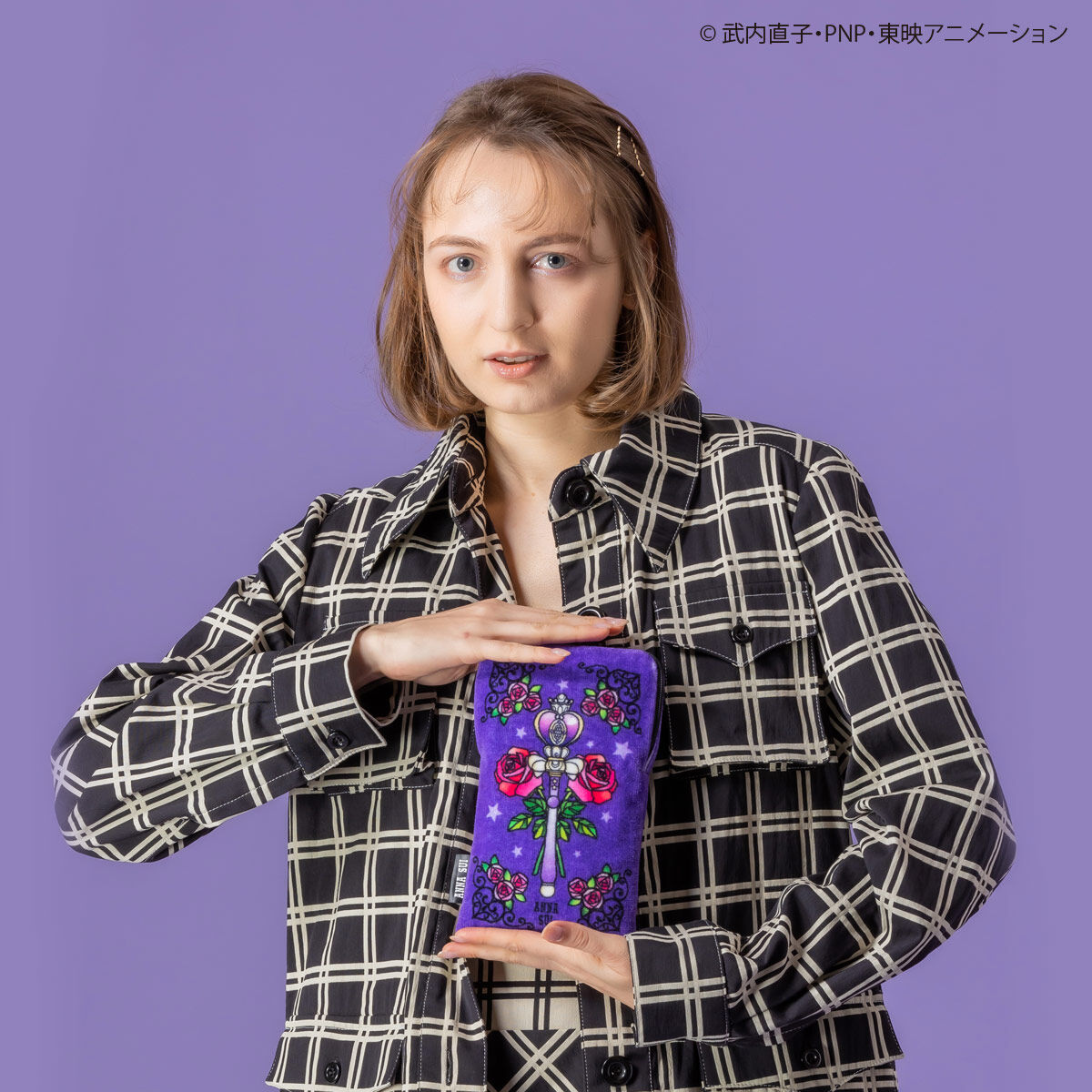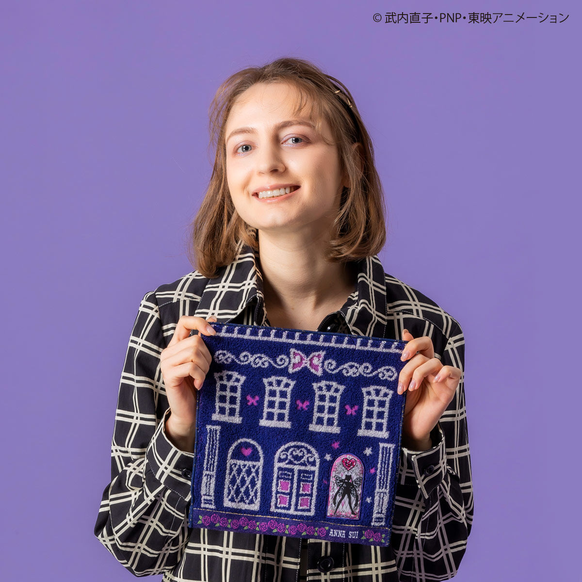 fioletowy; z motywem fasady budynku i sylwetką Sailor Moon; wymiary to 25 x 25 cm; 1100 jenów za sztukę (ok. 38 zł).