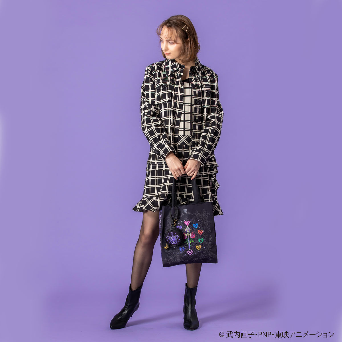 Mini torba - czarna; duży nadruk ze Spiral Heart Moon Rod i znakami planet; wymiary to 34 x 27,5 cm; 6490 jenów (ok. 222 zł).