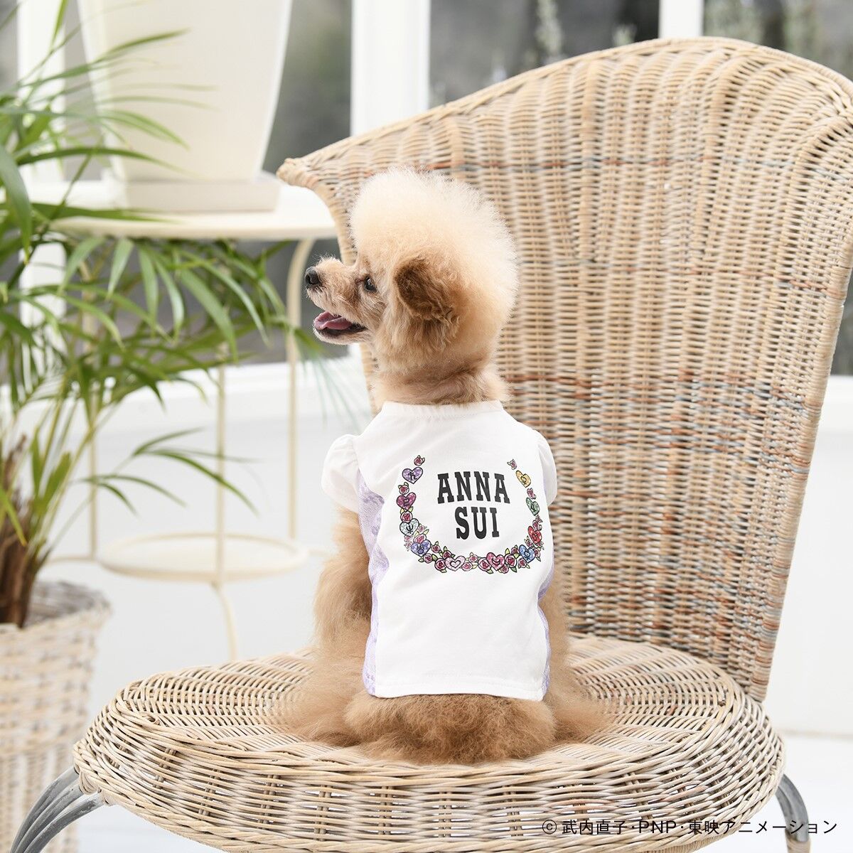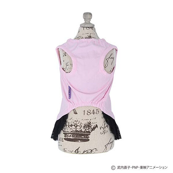 Sukienka dla psa z nadrukiem Luny - u dołu koronkowa falbanka; do wyboru w kolorze różowym lub zielonym; dostępne rozmiary to XS, S, M, L, 2L oraz DM (rozmiar na jamnika); 5170 jenów (ok. 177 zł).