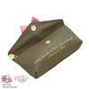 z naturalnej skóry; z wytłoczeniami; przegródka na bilon zamykana na ekspres wszyty z dwóch boków; przegródki na karty; przy ekspresie zawieszka z Rainbow Moon Chalice ze skrzydłami motyla; wymiary to 11 x 9,5 cm; 23 100 jenów za sztukę