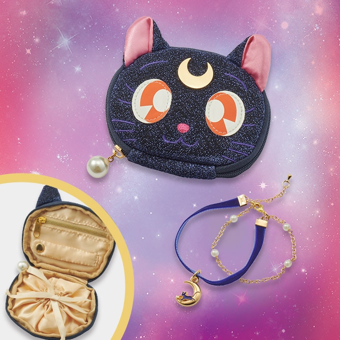 drobiazgi oraz trzecie etui tematyczne, w różowym zestawie jest to etui w kształcie broszki Cosmic Heart Compact, a w granatowym w kształcie głowy Luny; 4900 jenów (ok. 171 zł) za sztukę.