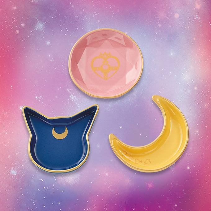 Zestaw mini talerzyków - zestaw trzech mini talerzyków na drobiazgi; w zestawie talerzyk okrągły, w kształcie głowy Luny oraz w kształcie półksiężyca; 3200 jenów (ok. 111 zł).