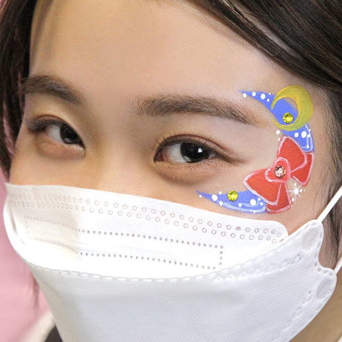 Usługa malowania twarzy - przy zakupie zestawu do makijażu można dodatkowo wykupić usługę malowania twarzy; 2200 jenów (ok. 77 zł).