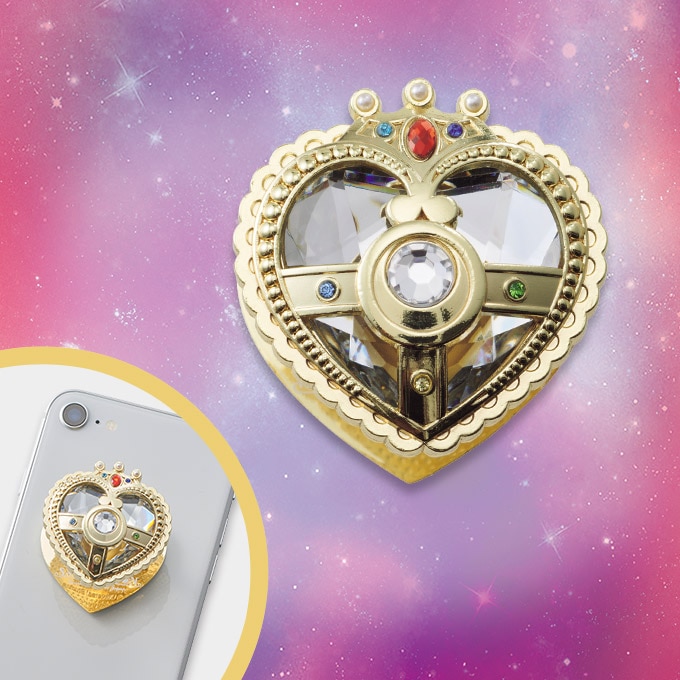 Uchwyt do smartfona - z broszką Cosmic Heart Compact; doczepiane zawieszki; 2000 jenów (ok. 70 zł).