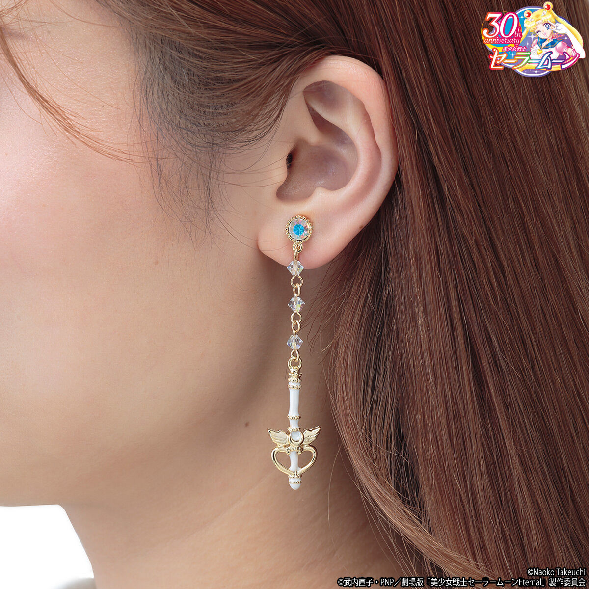 Eternal Ear Accessory - kolczyki lub klipsy z Moon Kaleidoscope; ozdobione kryształkami; długość 67 mm, zawieszka z kalejdoskopem 34 x 15 mm; 4950 jenów (ok. 181 zł) za parę.