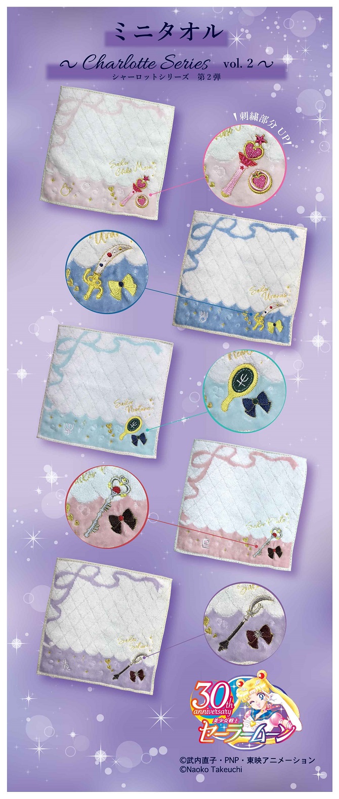W maju w sprzedaży pojawią się mini ręczniki z drugiej części serii Charlotte. Do uzbierania będą wzory inspirowane Sailor Chibi Moon i outer senshi. Ręczniki mają wymiary 25 x 25 cm i pokryte są powłoką antybakteryjną. Cena za sztukę to 660 jenów (ok.