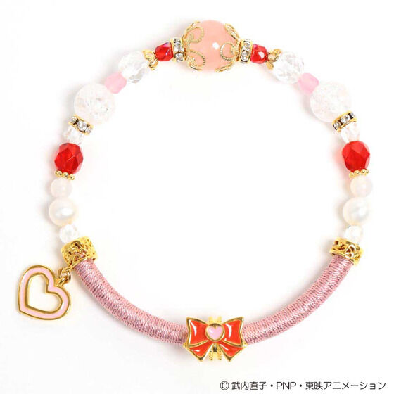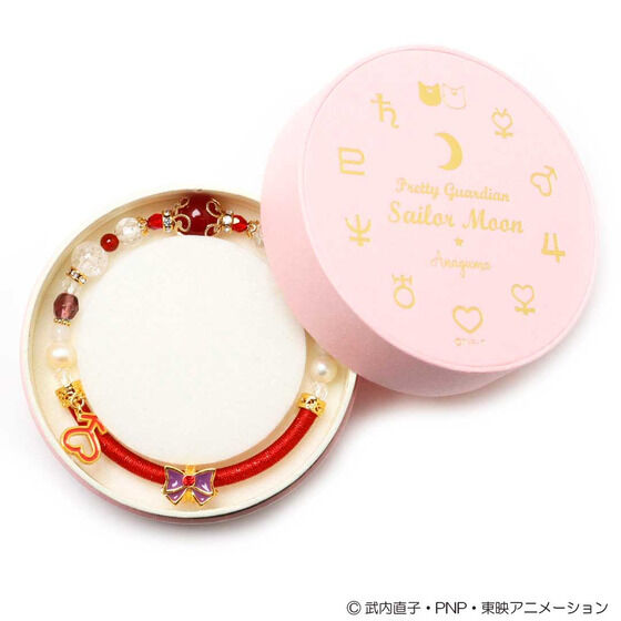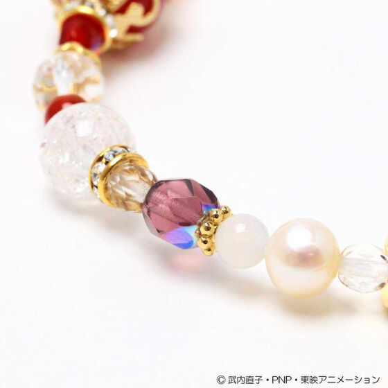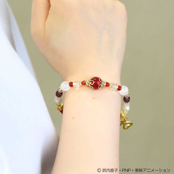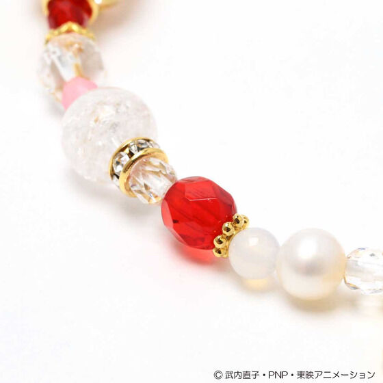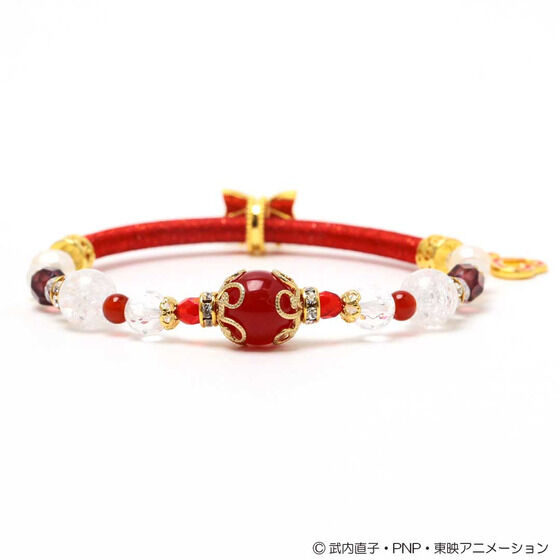 Bransoletka Sailor Mars zawiera czerwony kwarcyt, kryształ, kwarc trzaskany, czerwony i biały agat oraz perły.