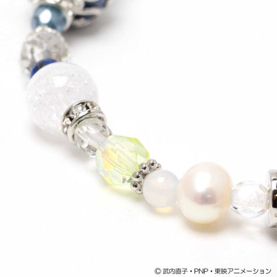 Bransoletka Sailor Neptune zawiera zielony onyks, kryształ, kwarc trzaskany, perły oraz biały agat.