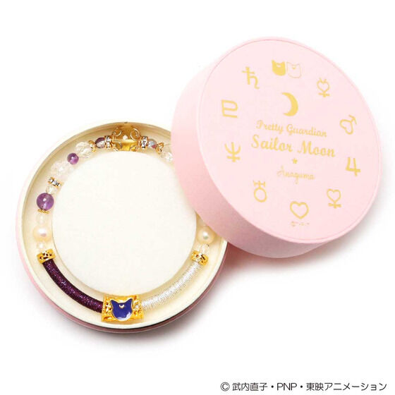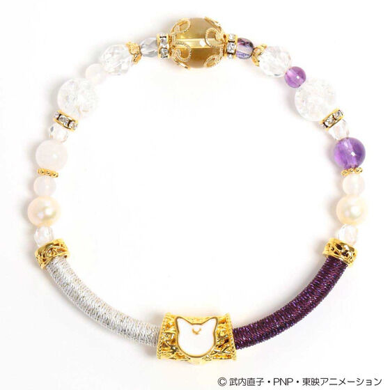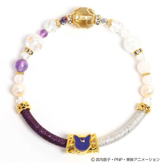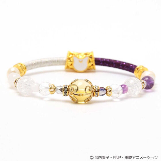 Bransoletka Luny i Artemisa zawiera cytryn, fioletowy ametyst, kryształ, kwarc trzaskany, perły oraz biały agat. Element ozdobny ma po jednej stronie głowę Luny, a po drugiej Artemisa.