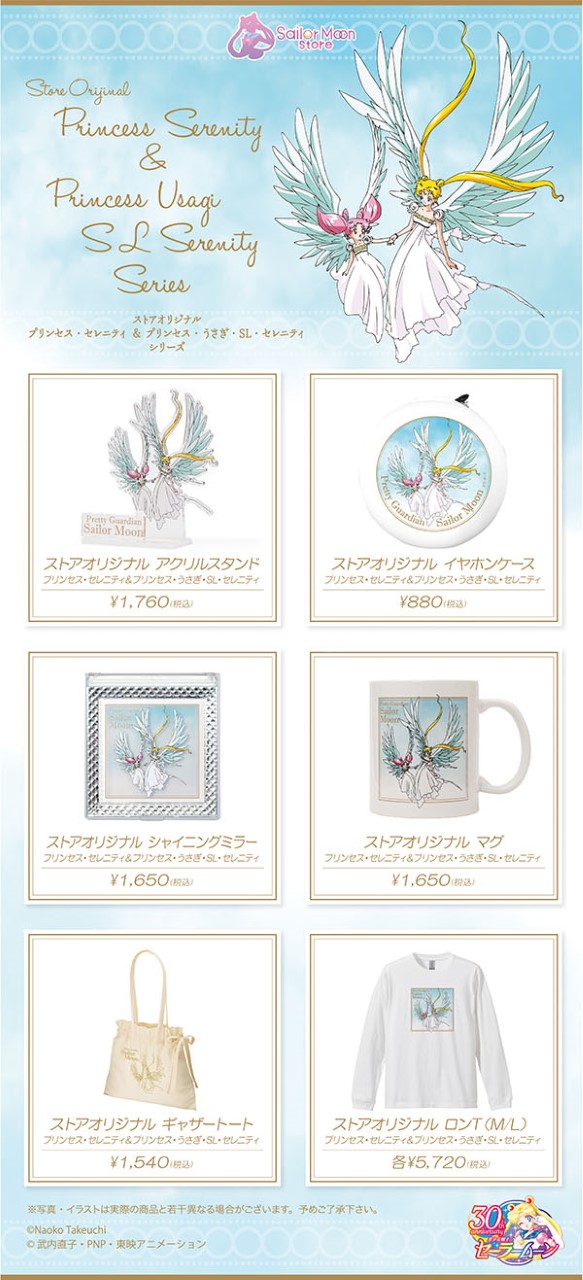 We wszystkich sklepach Sailor Moon Store pojawią się artykuły z grafiką z Księżniczką Serenity i Księżniczką Małą Damą Serenity. W sprzedaży dostępne będą w grudniu, a w sklepie online od 19 grudnia (Pretty Guardians) i 22 grudnia (regularni klienci).