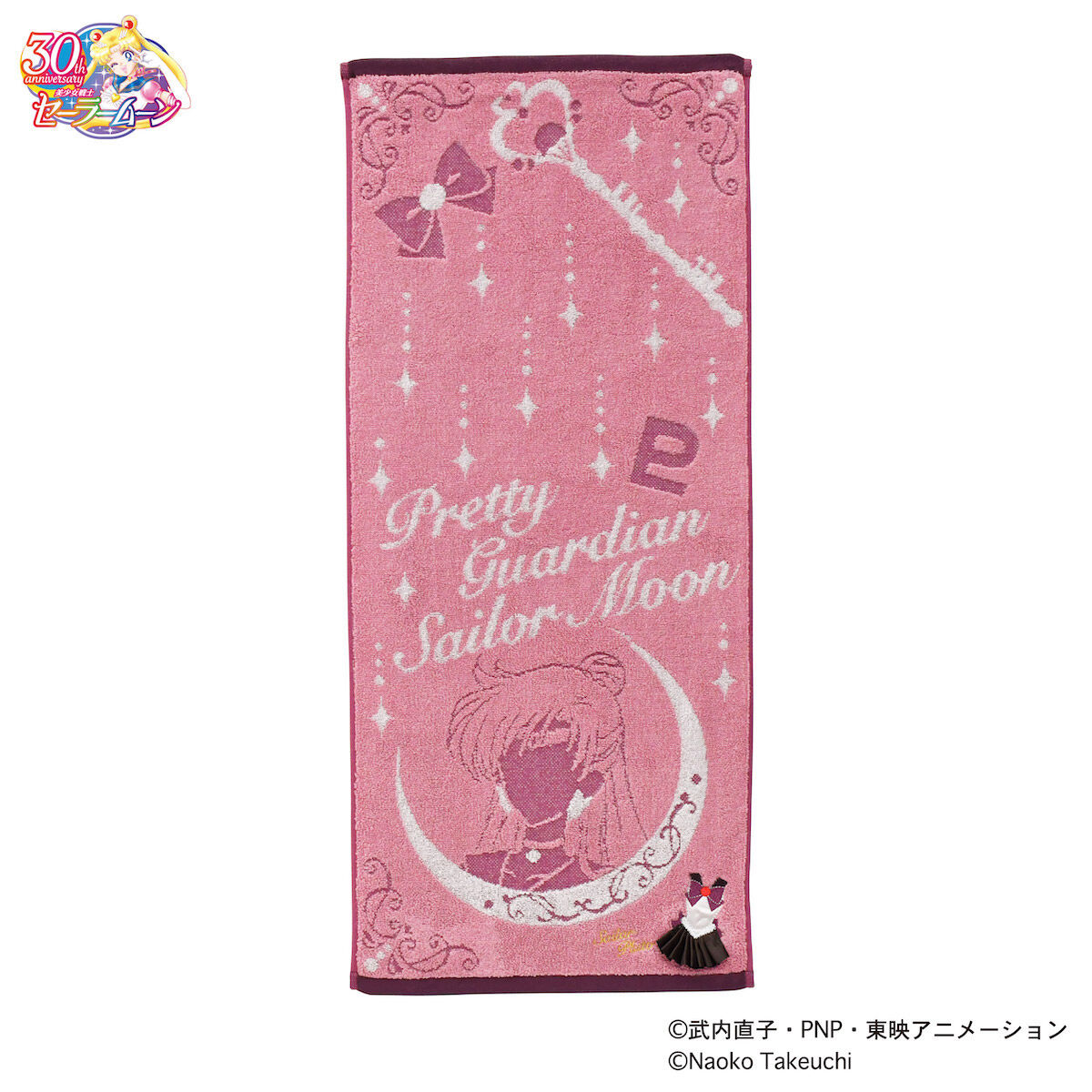 Sailor Moon i logiem Sailor Moon Store; 1320 jenów (ok. 42 zł). Żakardowy ręcznik - z klasycznym logiem Sailor Moon; 1980 jenów (ok. 64 zł).