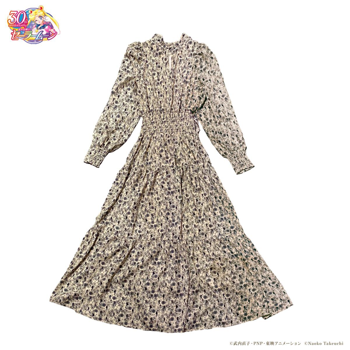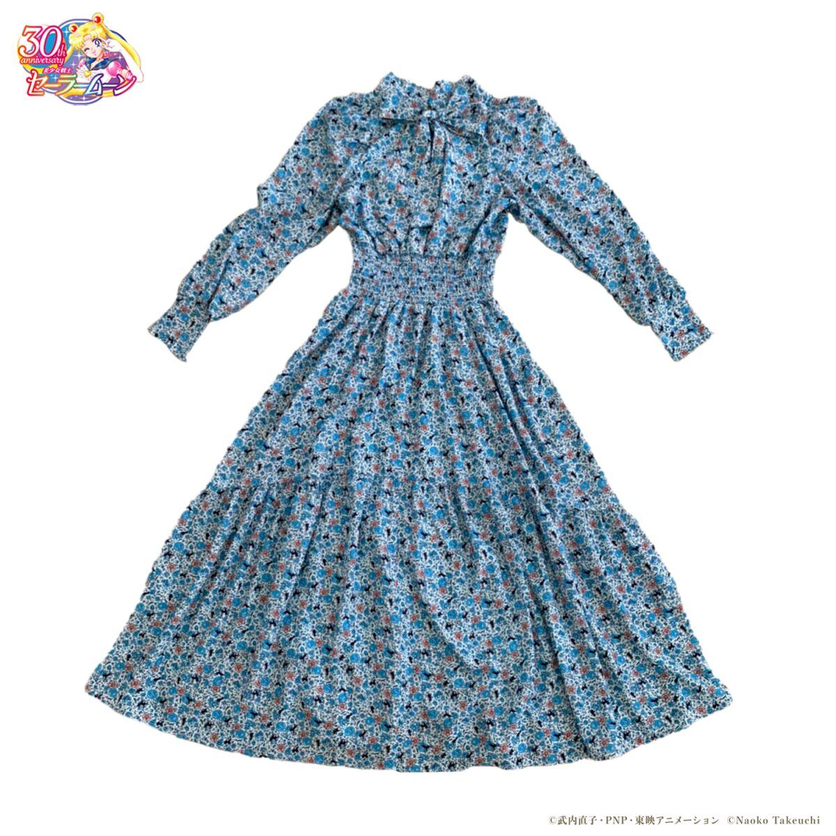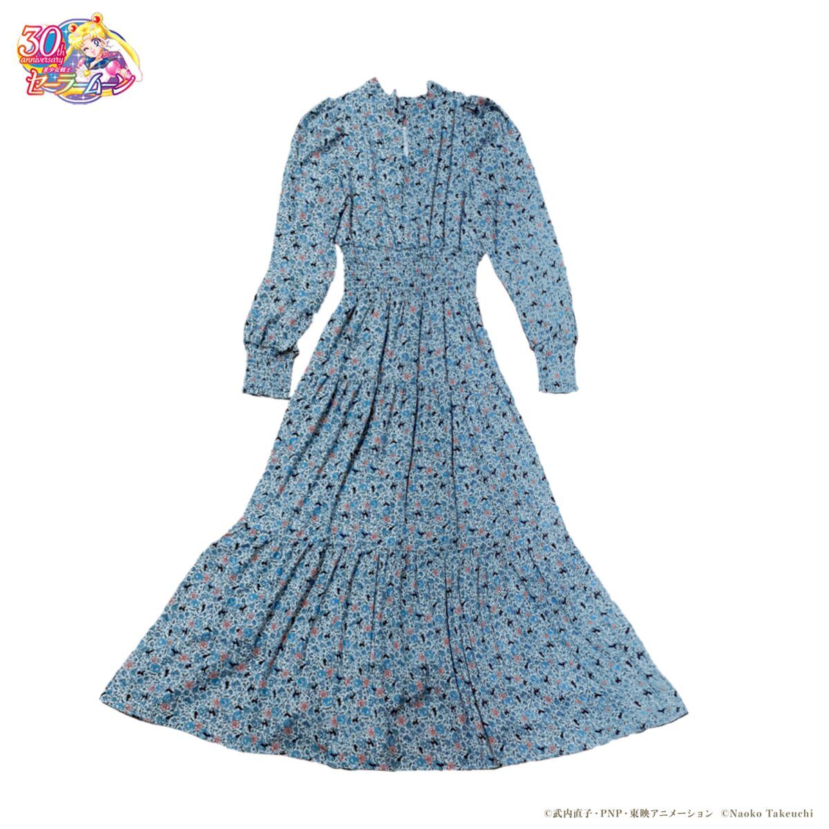 Sukienki - długie z długim rękawem; do wyboru biała z nadrukiem w sylwetki inner senshi, znaki planet oraz Srebrny Kryształ Iluzji lub niebieska z nadrukiem z Luną i broszką Crystal Star; rozmiar uniwersalny; 15 290 jenów (ok. 503