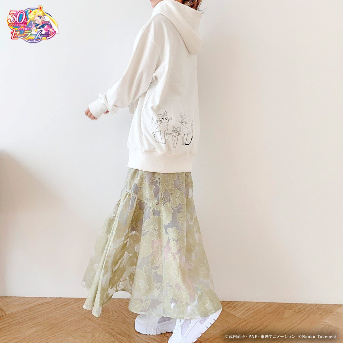 zł) za sztukę. Bluzy - z długim rękawem i kapturem; do wyboru 3 kolory: biały z nadrukiem z kotami z tyłu, fioletowa z Księżniczką Serenity z tyłu oraz różowa z nadrukiem Księżniczki Serenity z przodu; rozmiar uniwersalny; 10