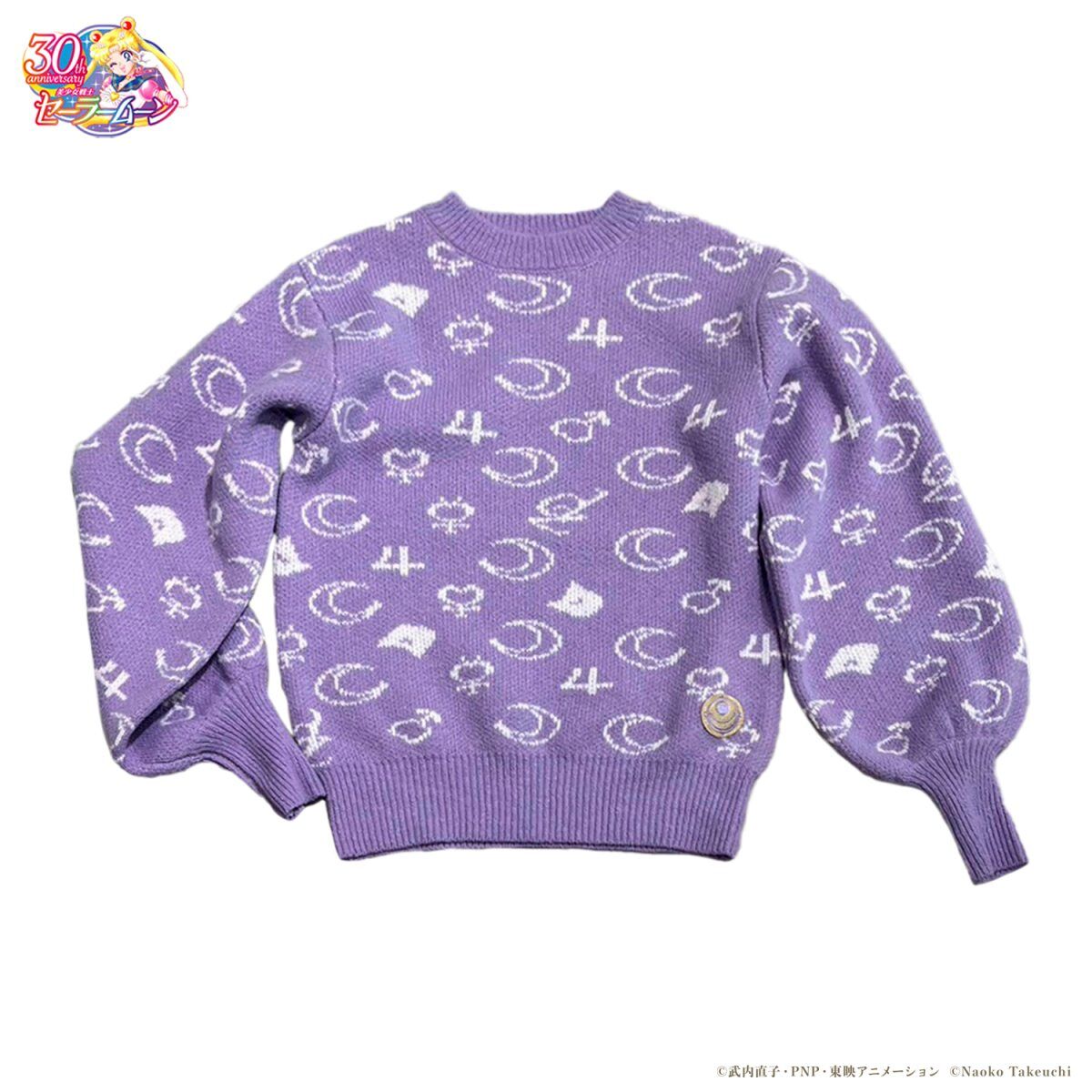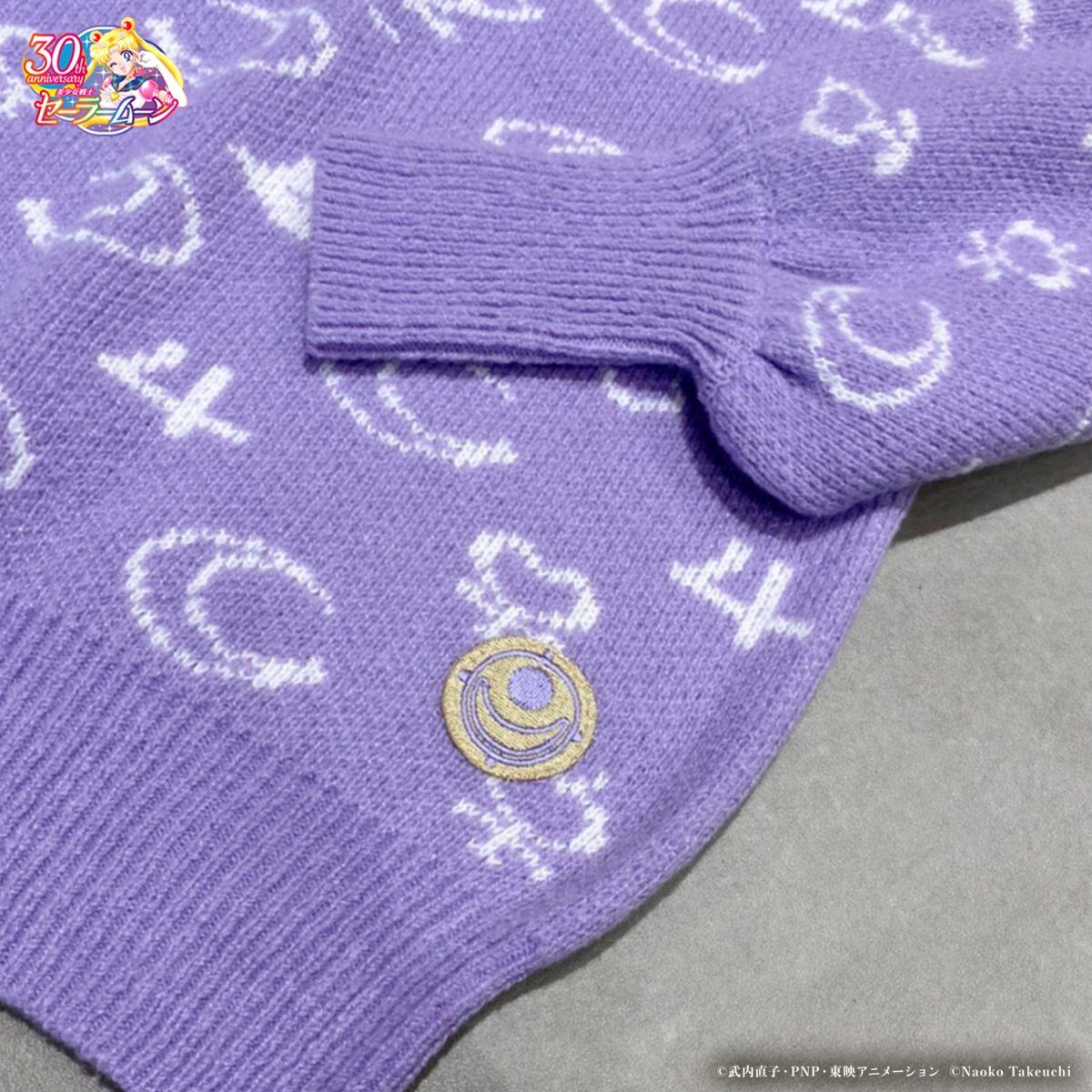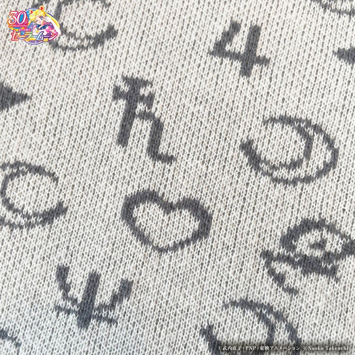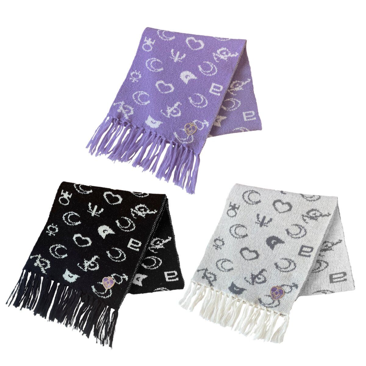 890 jenów (ok. 358 zł) za sztukę. Swetry - biały, fioletowy lub czarny ze znakami planet inner senshi; aplikacja z Henshin Brooch; rozmiar uniwersalny; 9790 jenów (ok. 322 zł) za sztukę. Szaliki - biały, fioletowy lub czarny