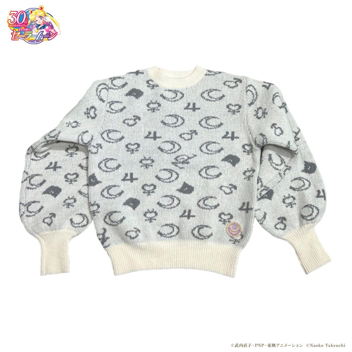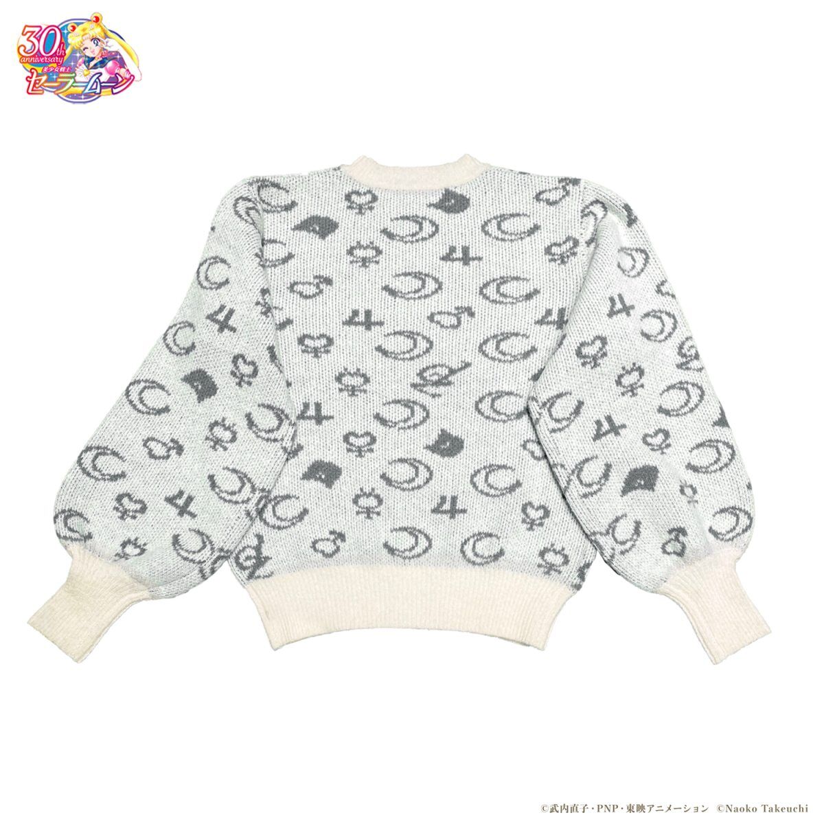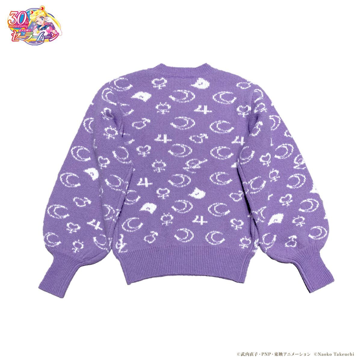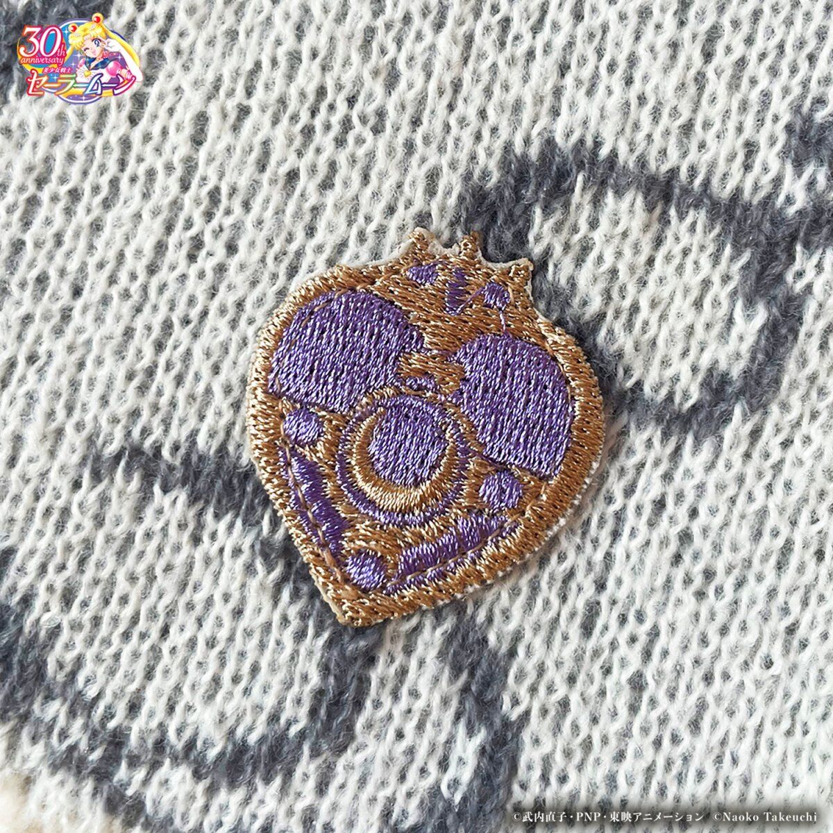 890 jenów (ok. 358 zł) za sztukę. Swetry - biały, fioletowy lub czarny ze znakami planet inner senshi; aplikacja z Henshin Brooch; rozmiar uniwersalny; 9790 jenów (ok. 322 zł) za sztukę. Szaliki - biały, fioletowy lub czarny