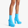 SAILOR MERCURY BOOT 140 / BLUE - buty inspirowane butami Sailor Mercury; botki z niebieskiej lakierowanej skóry; na koturnie; 179 300 jenów (ok. 6128 zł).