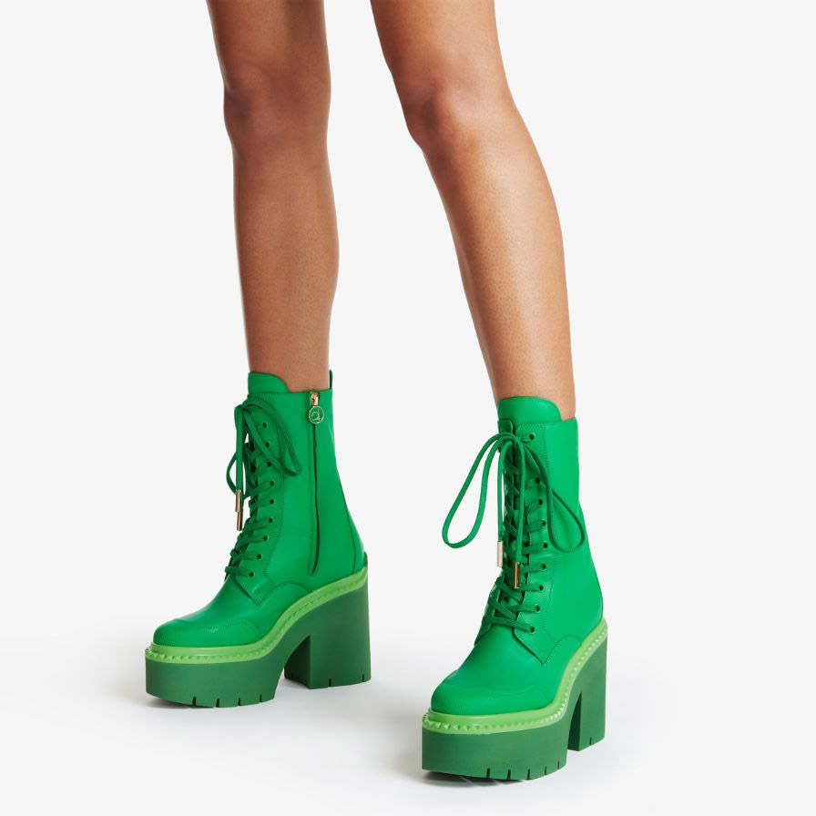 SAILOR JUPITER BOOT 120 / GREEN – trapery na obcasie i koturnie inspirowane butami Sailor Jupiter; wykonane ze skóry; 188 100 jenów (ok. 6429 zł).