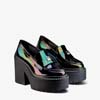 LUNA LOAFER 120 / IRRIDESCENT - pantofle na obcasie i platformie; wykonane z czarnej skóry z opalizującym efektem; 139 700 jenów (ok. 4775 zł).