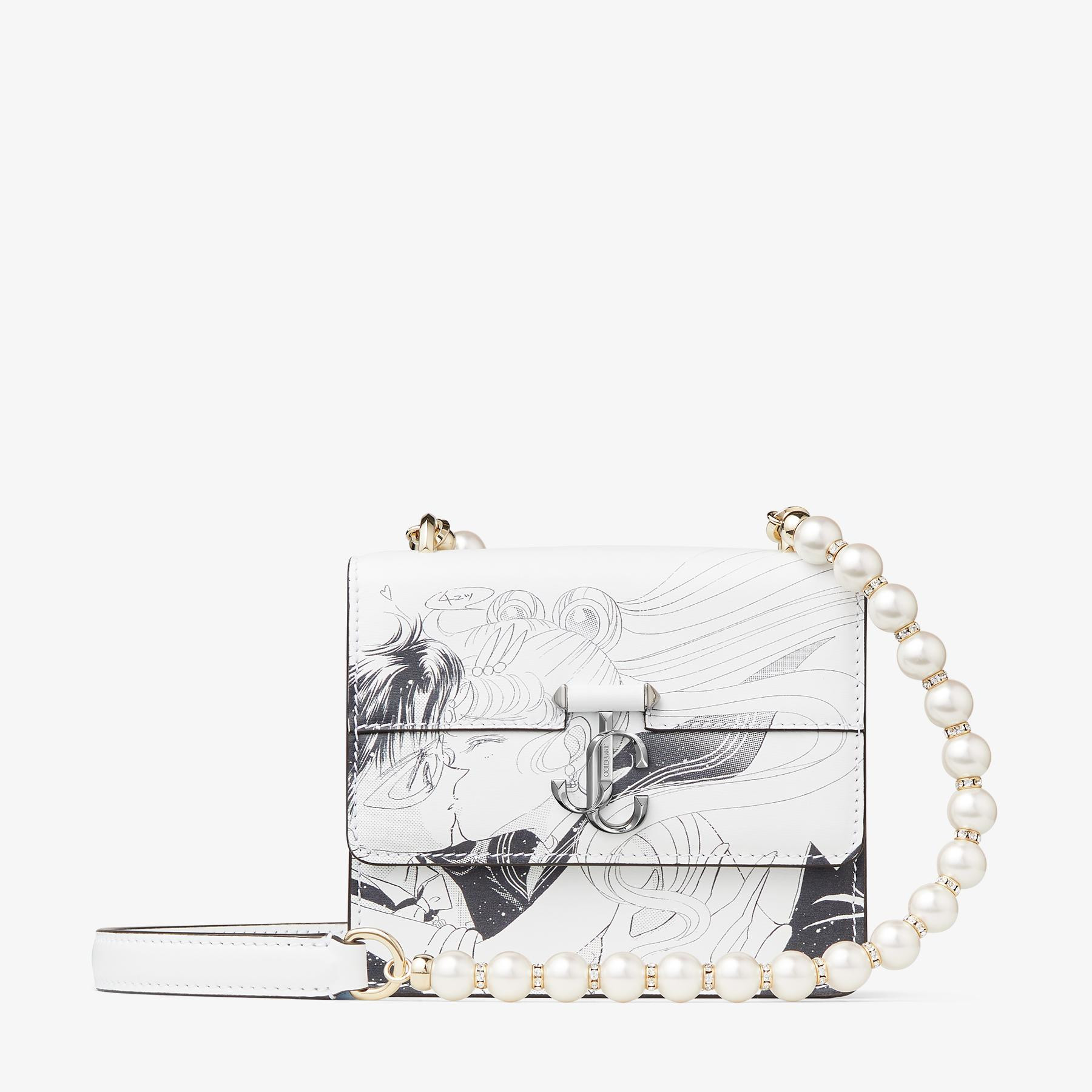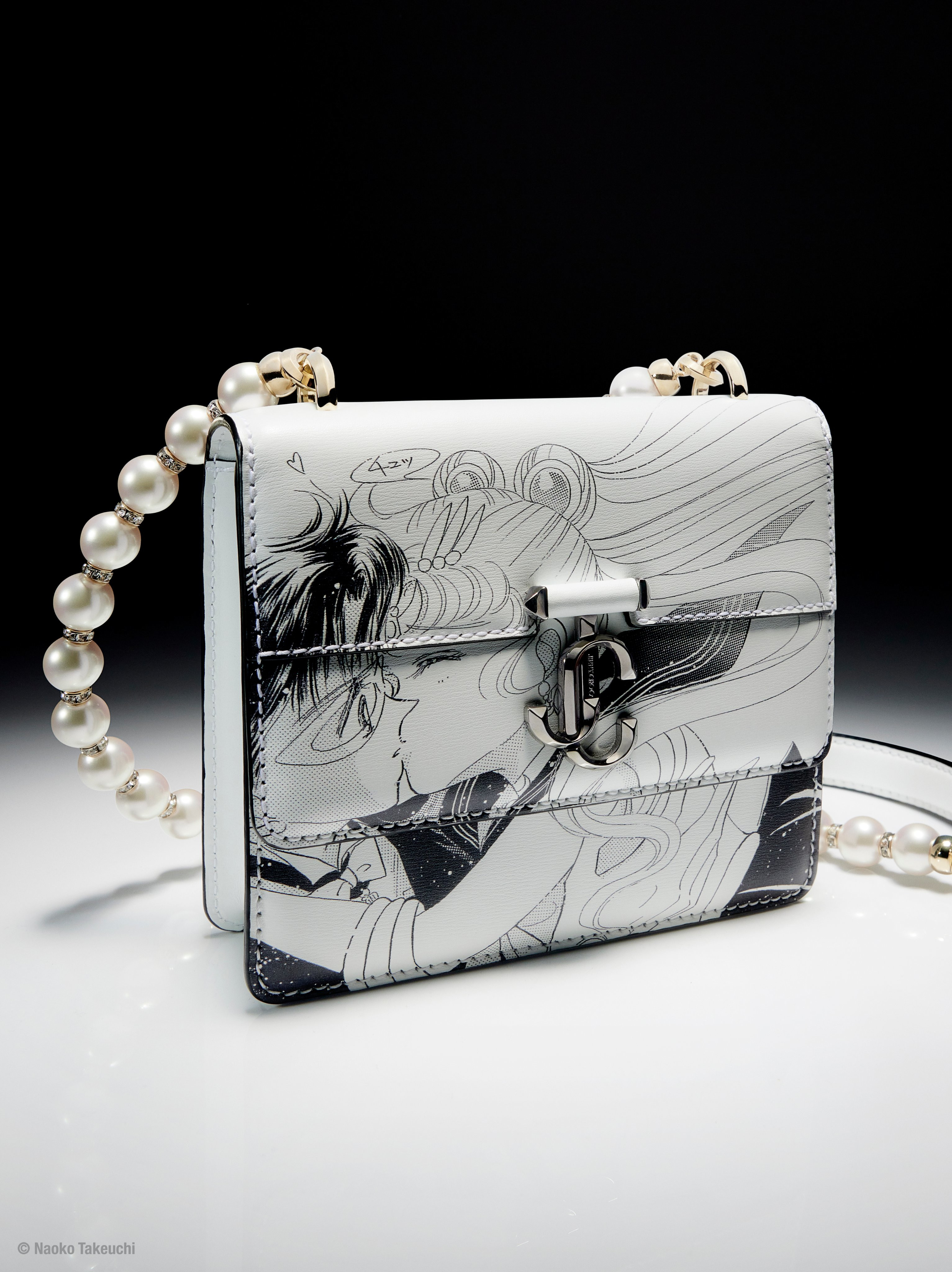 SAILOR MOON VARENNE QUAD XS / PINK/LIGHT GOLD / BLUE/LIGHT GOLD / RED/LIGHT GOLD / GREEN/LIGHT GOLD / ORANGE/LIGHT GOLD / MONOCHROME - torebki z nadrukiem z kadrów mangi i paskiem na ramię częściowo wykonanym z pereł; do wyboru wersje poświęcone pięciu