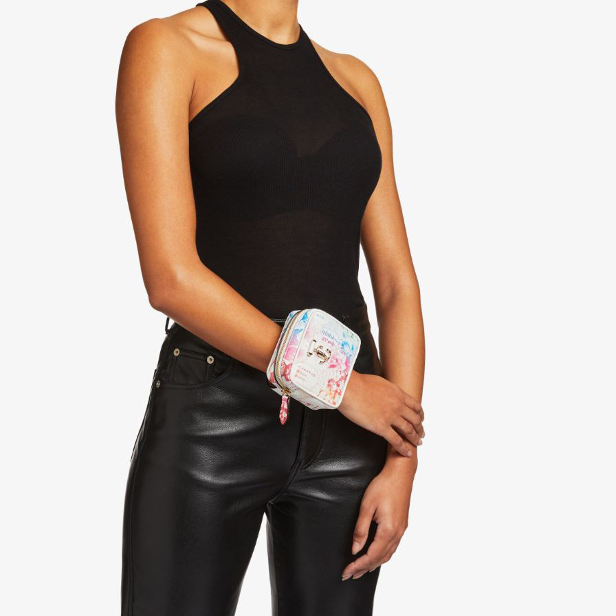 SAILOR GUARDIANS RAINBOW WRIST BAG / RAINBOW oraz COLLAGE WRIST BAG / MONOCHROME - małe saszetki przypinane na nadgarstek; do wyboru wersja kolorowa z inner senshi oraz czarno-biała z różnymi ważnymi scenami z mangi; 85 800 jenów (ok. 2933 zł).