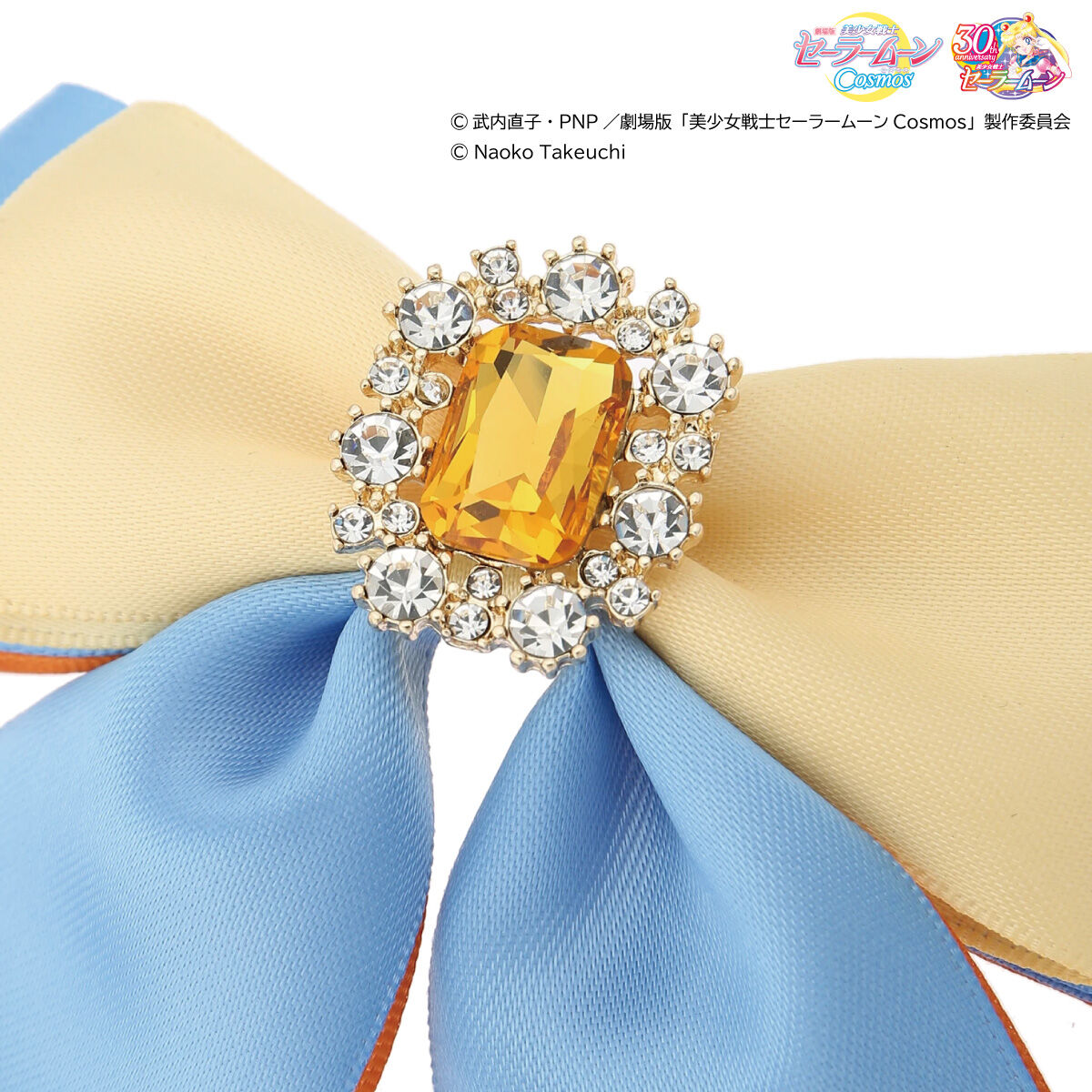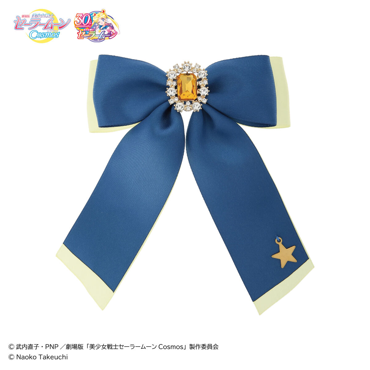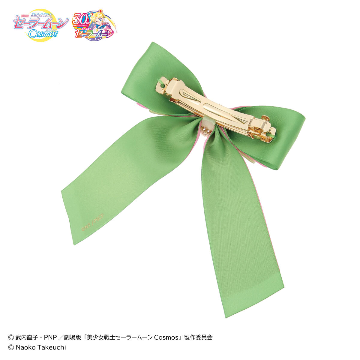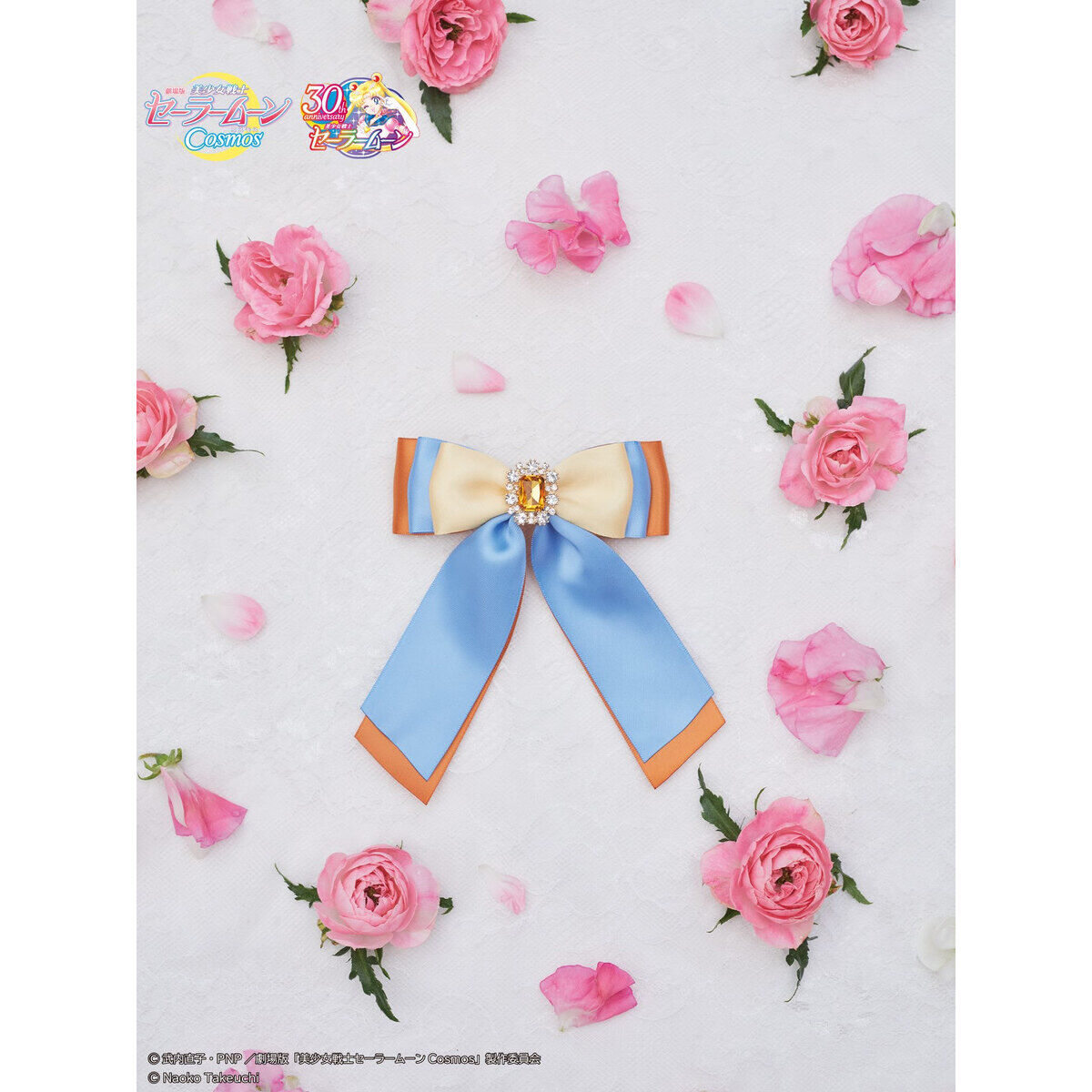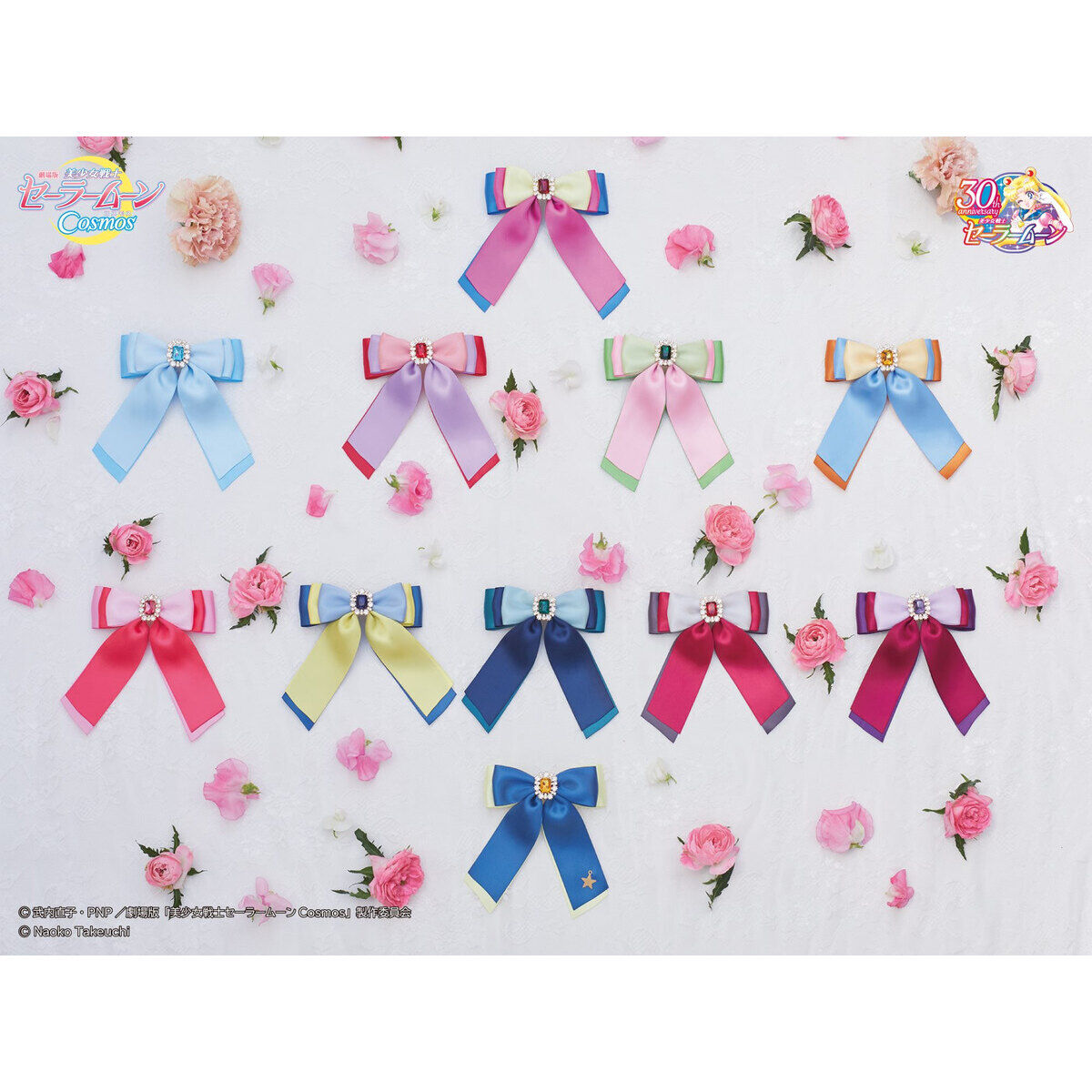 Spinki do włosów z kokardami - spinki automatyczne; do wyboru 11 wzorów: 10 wzorów inspirowanych 10 wojowniczkami oraz jeden inspirowany Sailor Starlights; wielkość kokardy to 14 x 12 cm; 3700 jenów (ok. 120 zł) za sztukę.