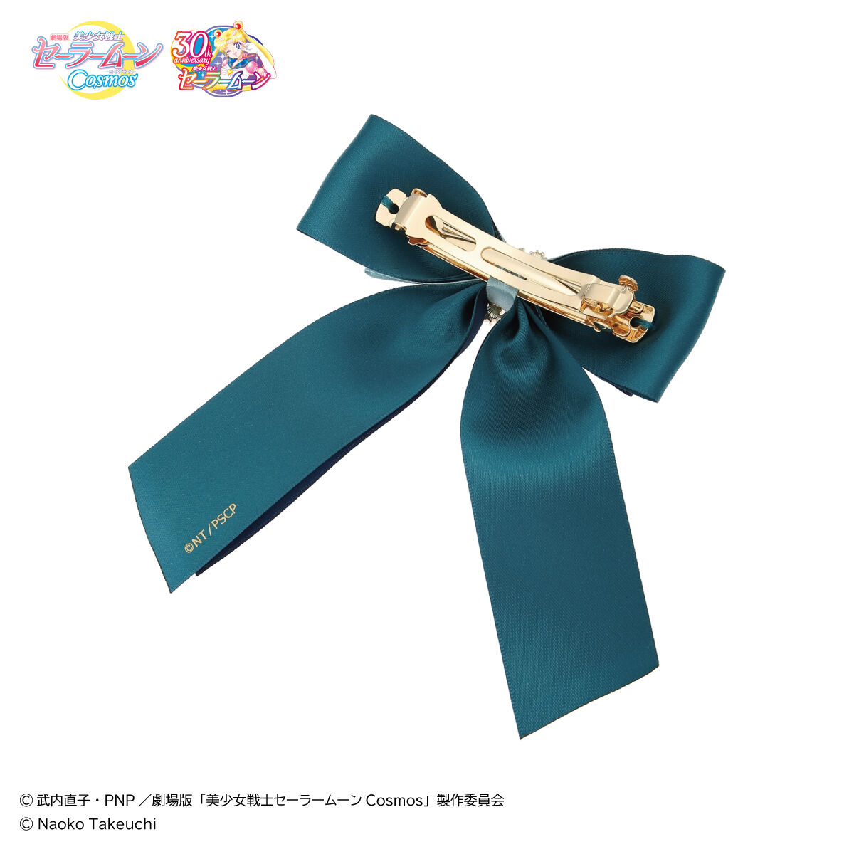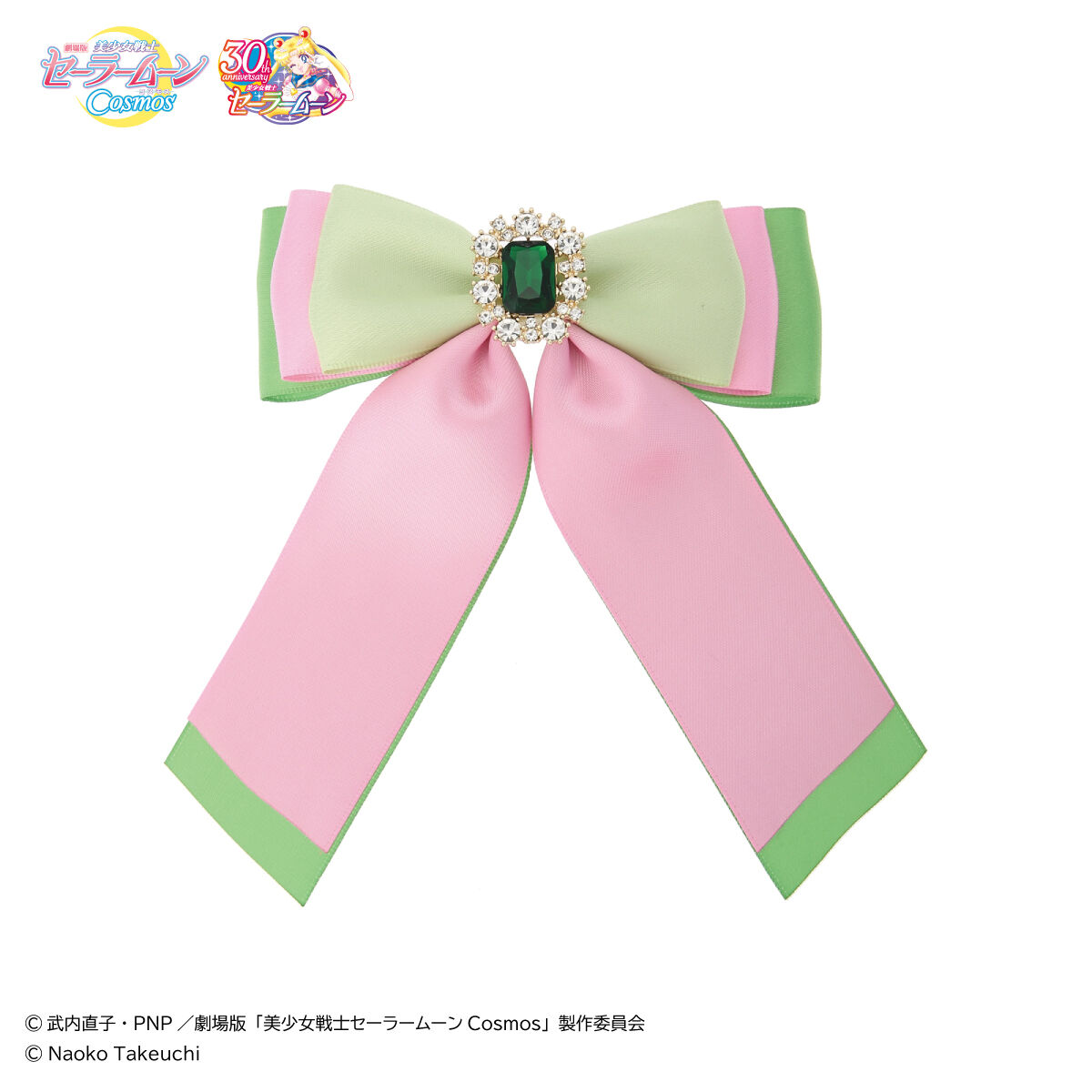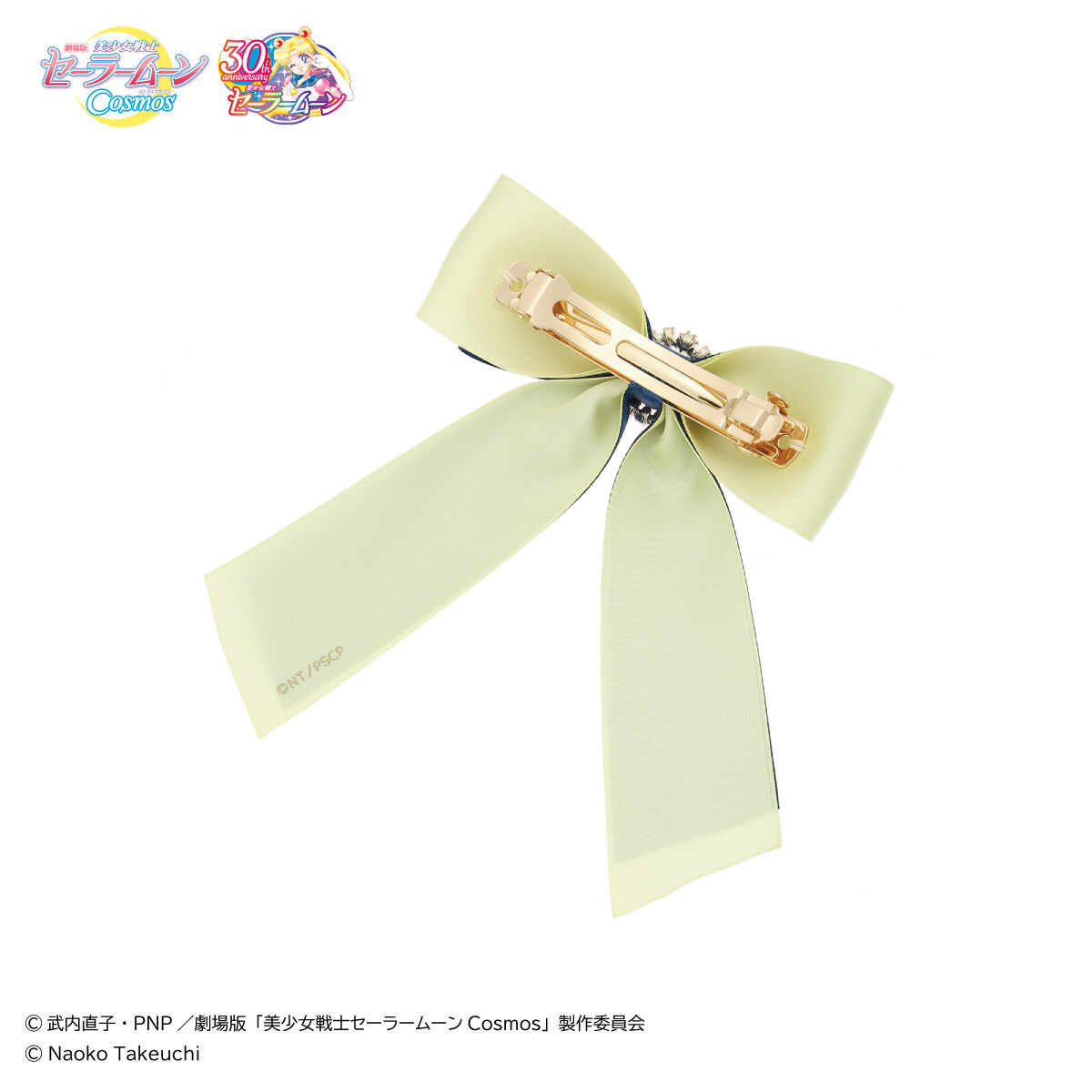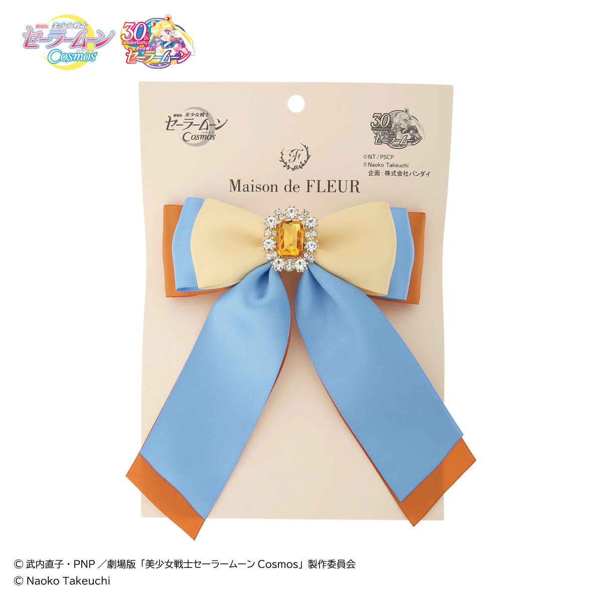 Spinki do włosów z kokardami - spinki automatyczne; do wyboru 11 wzorów: 10 wzorów inspirowanych 10 wojowniczkami oraz jeden inspirowany Sailor Starlights; wielkość kokardy to 14 x 12 cm; 3700 jenów (ok. 120 zł) za sztukę.