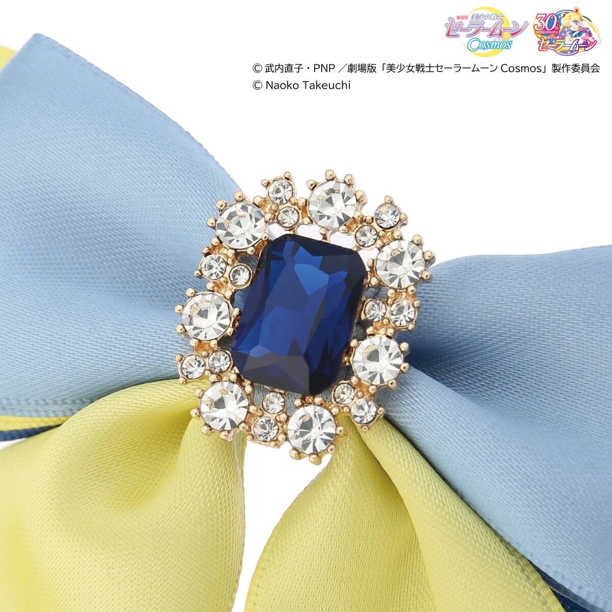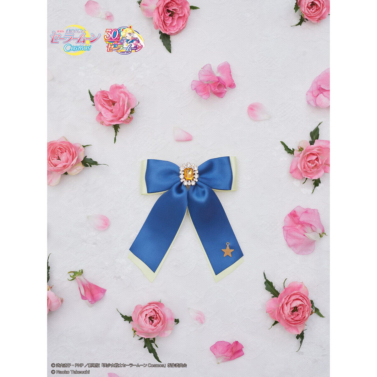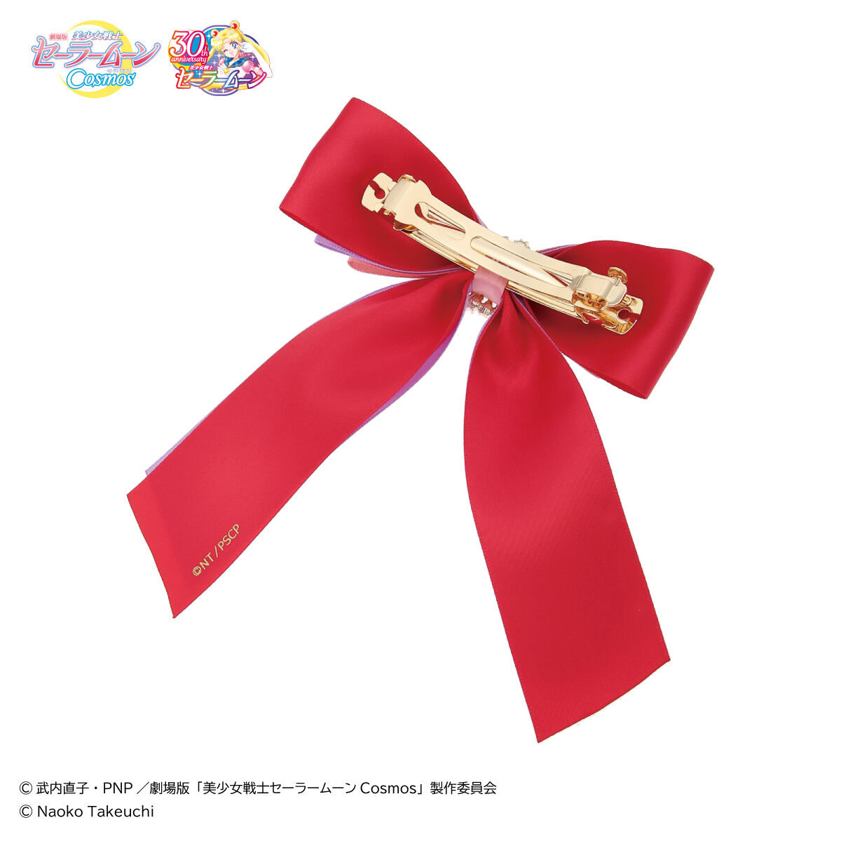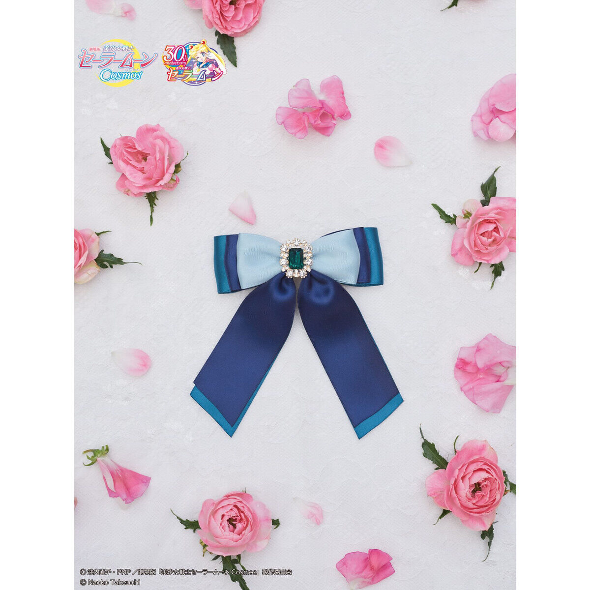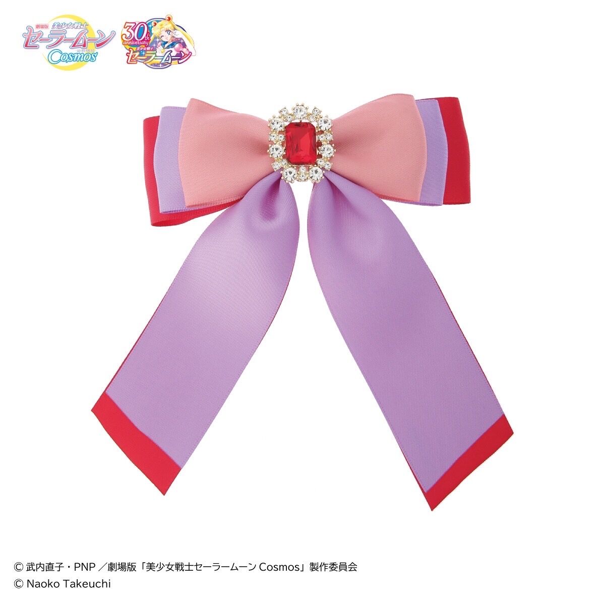 Spinki do włosów z kokardami - spinki automatyczne; do wyboru 11 wzorów: 10 wzorów inspirowanych 10 wojowniczkami oraz jeden inspirowany Sailor Starlights; wielkość kokardy to 14 x 12 cm; 3700 jenów (ok. 120 zł) za sztukę.