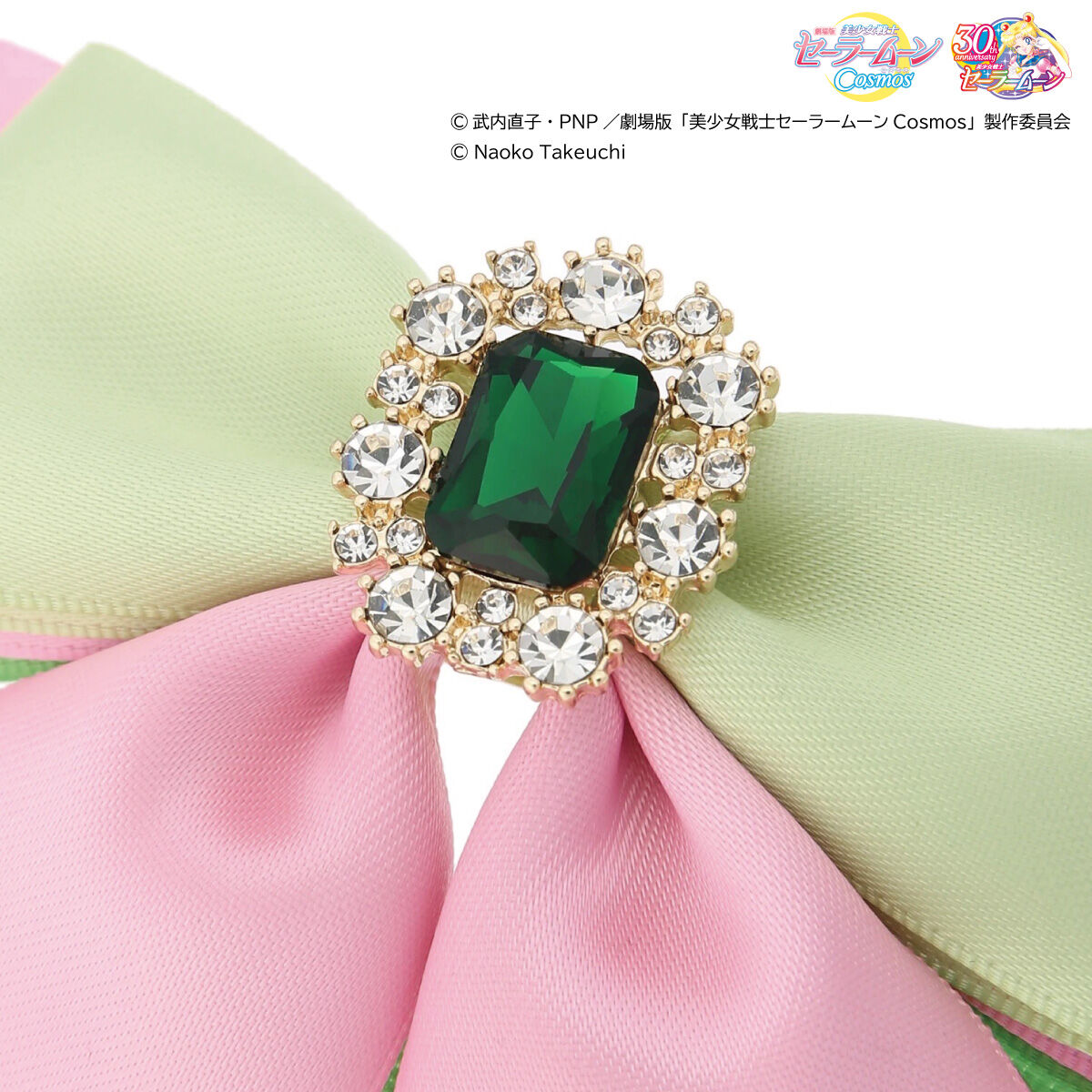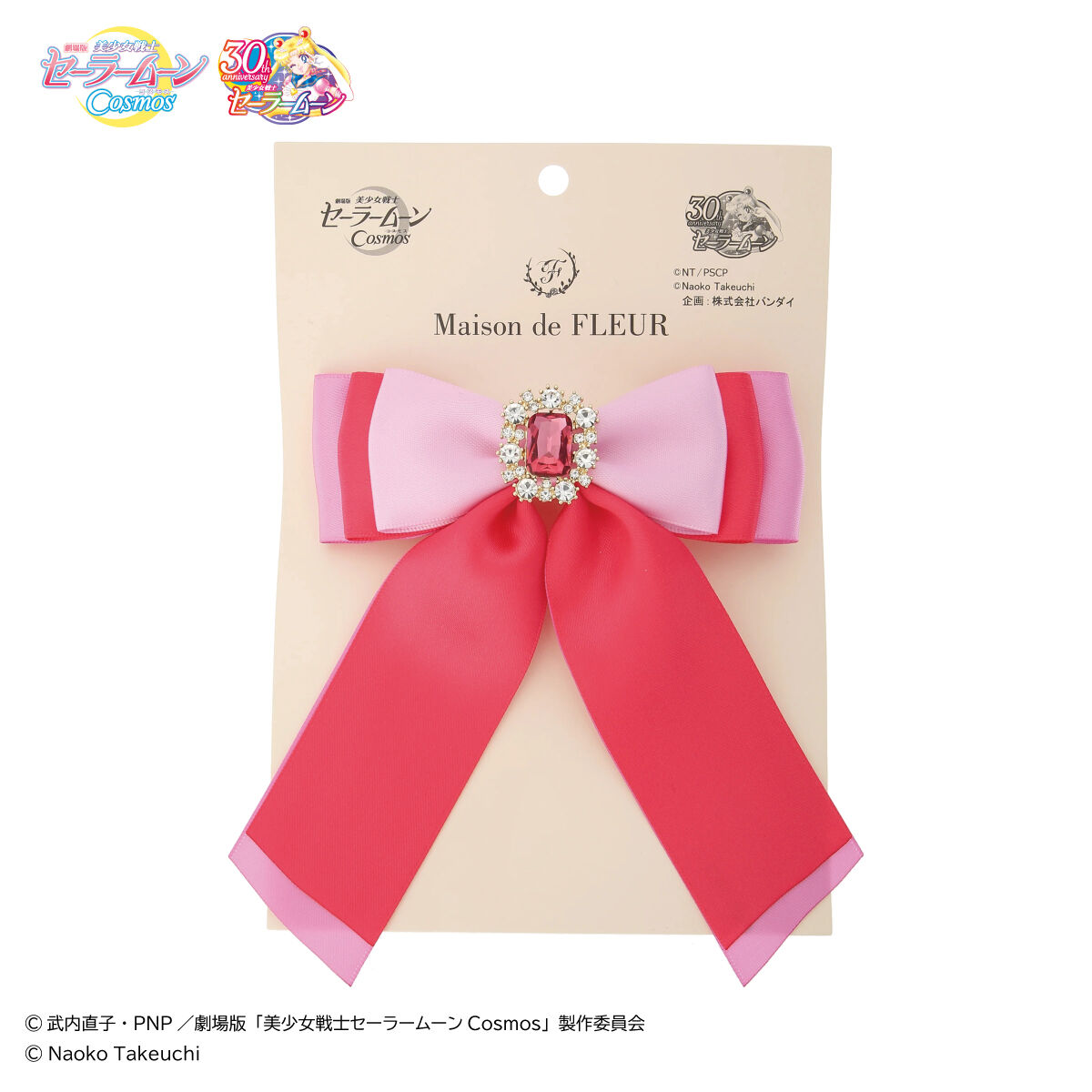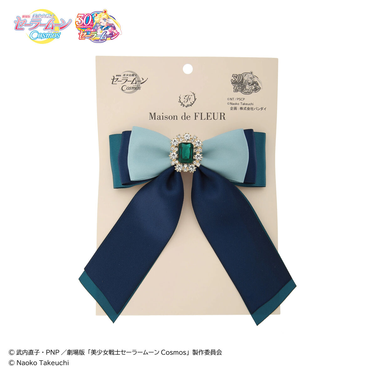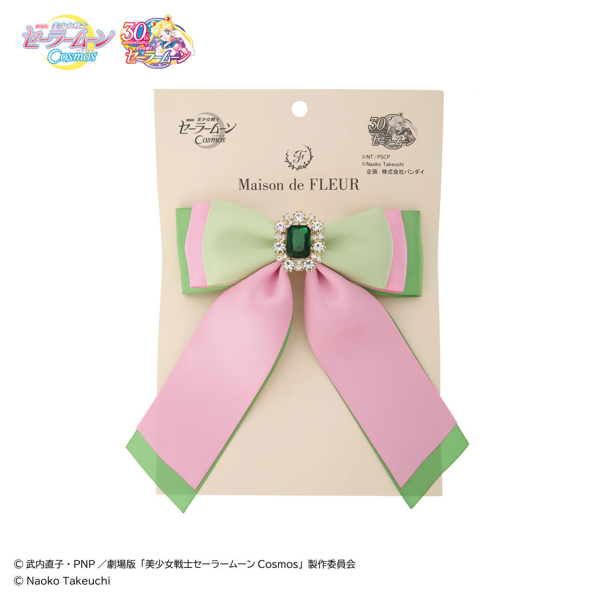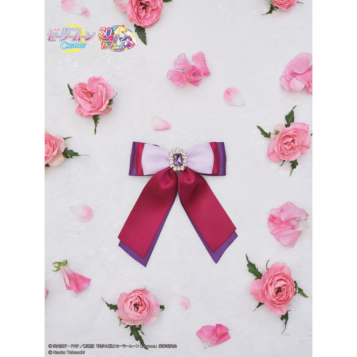 Spinki do włosów z kokardami - spinki automatyczne; do wyboru 11 wzorów: 10 wzorów inspirowanych 10 wojowniczkami oraz jeden inspirowany Sailor Starlights; wielkość kokardy to 14 x 12 cm; 3700 jenów (ok. 120 zł) za sztukę.