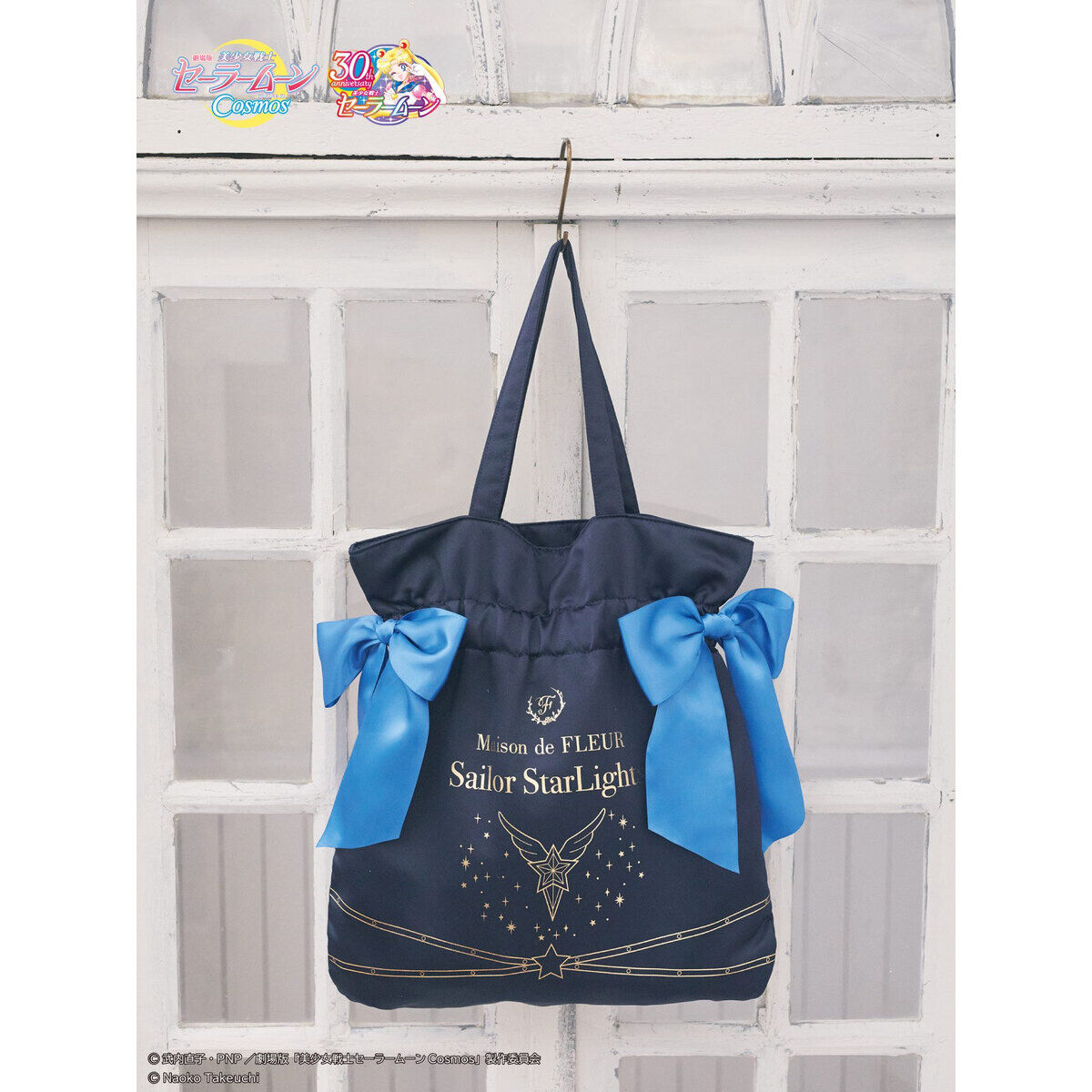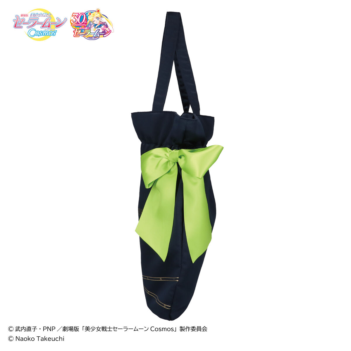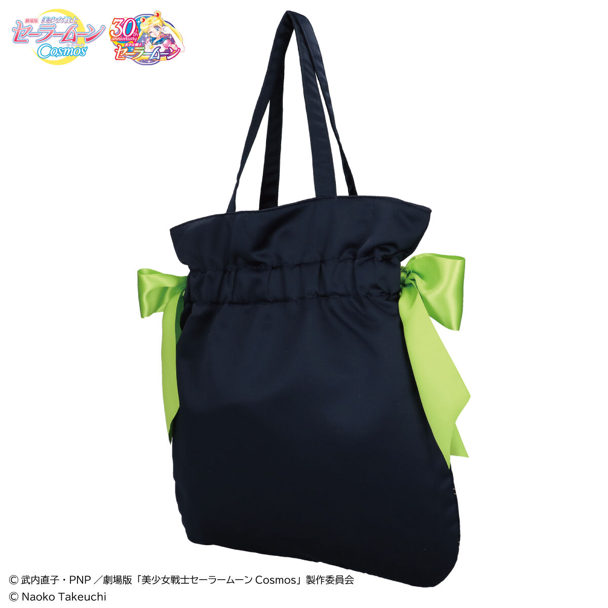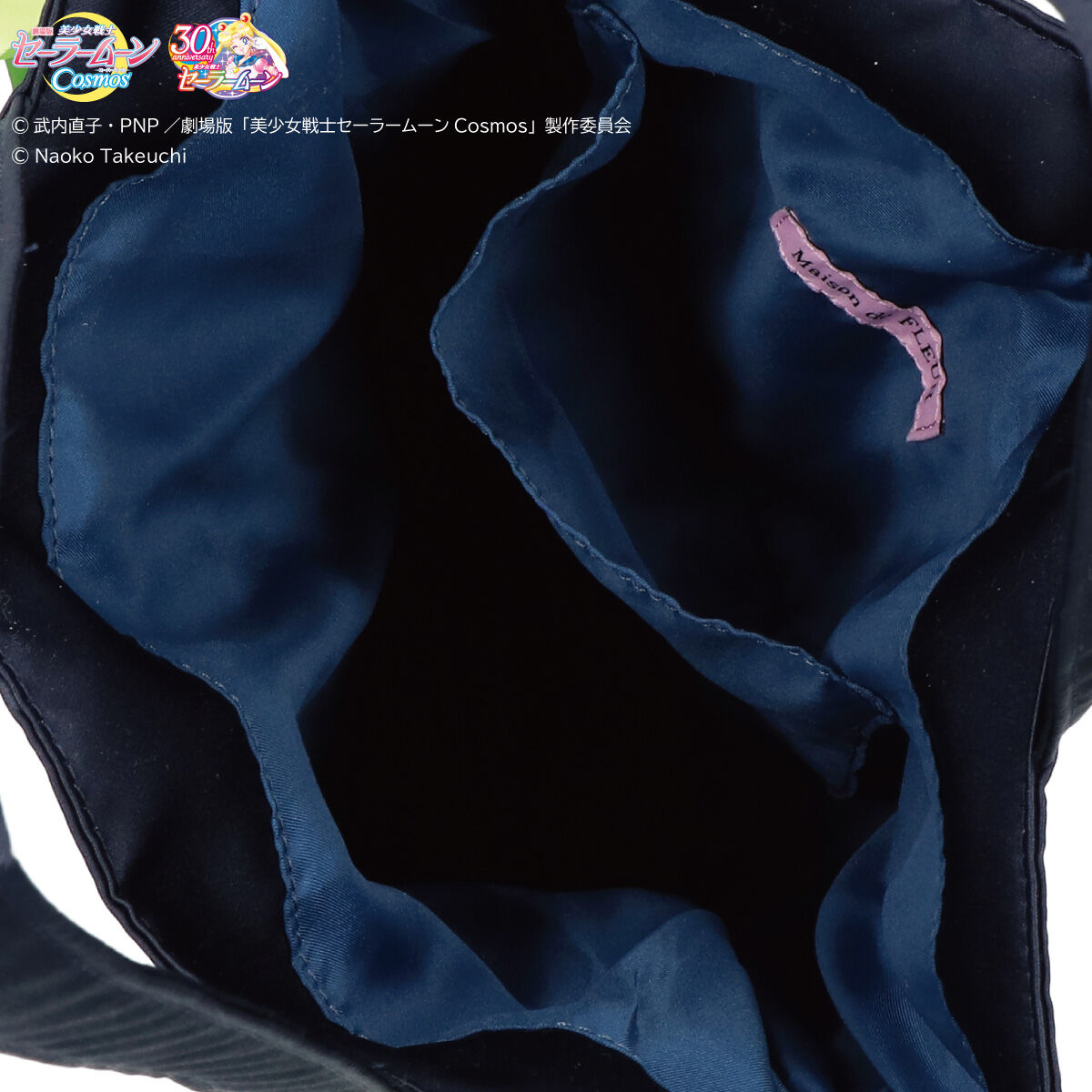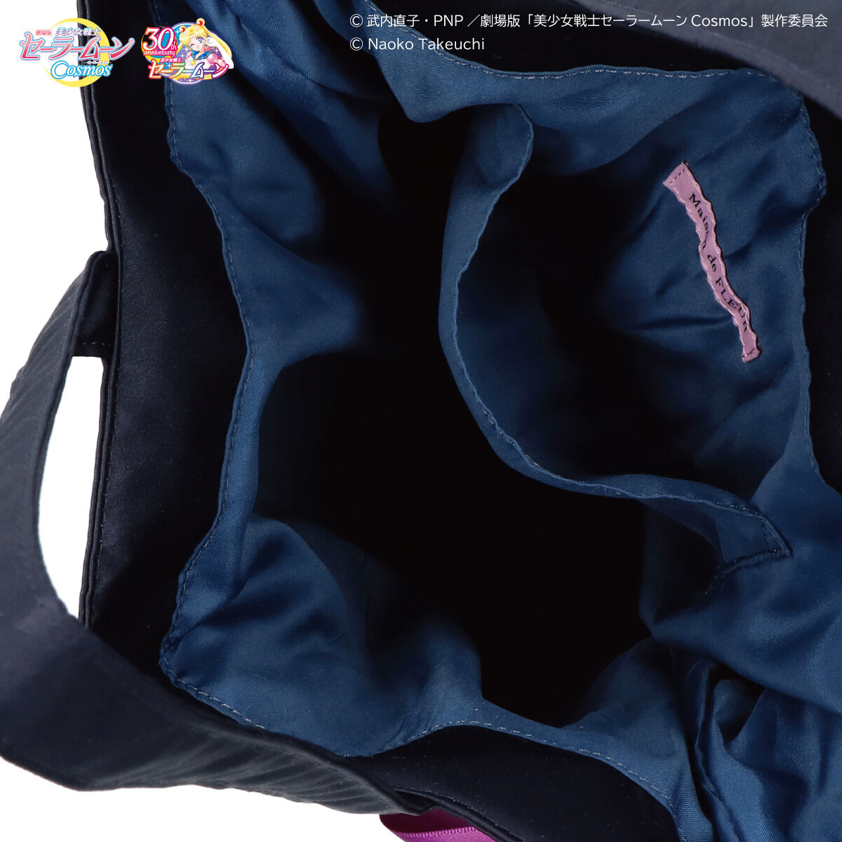 Torby na zakupy - granatowe; z dwiema kokardami; do wyboru wzory inspirowane Sailor Moon i Sailor Starlights; wymiary torby to 45 x 42 cm; 6900 jenów (ok. 173 zł) za sztukę.