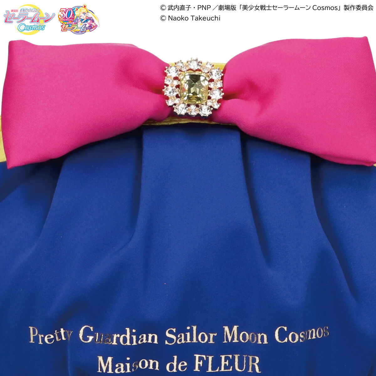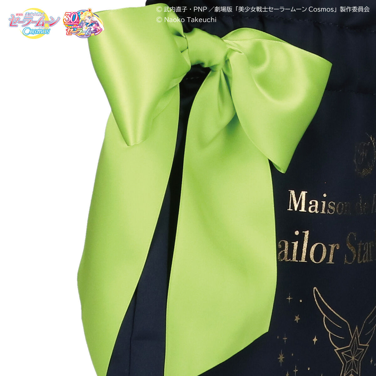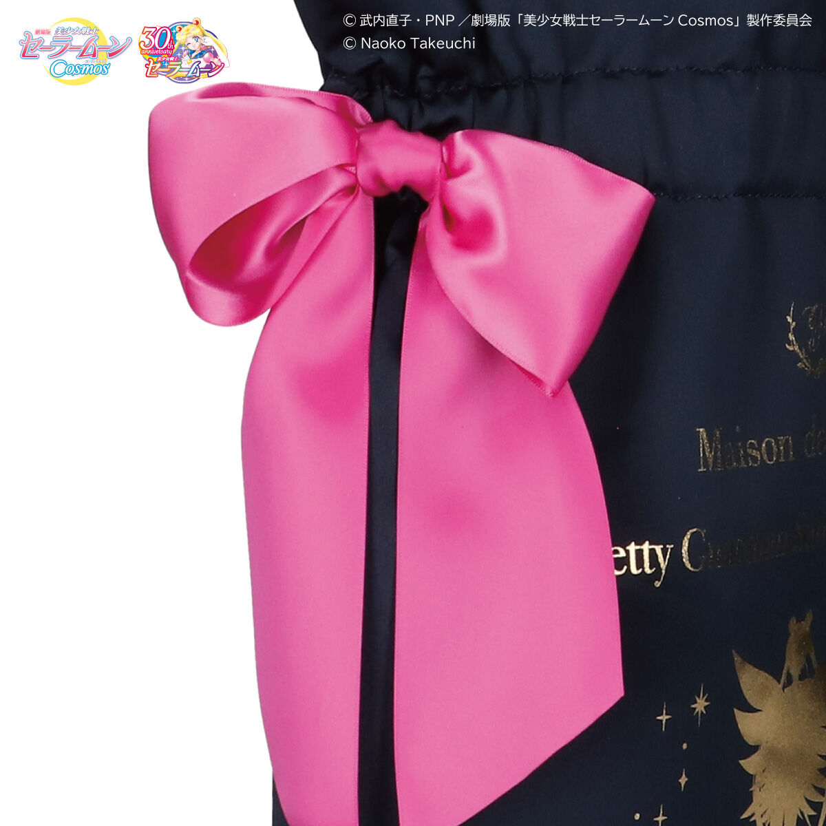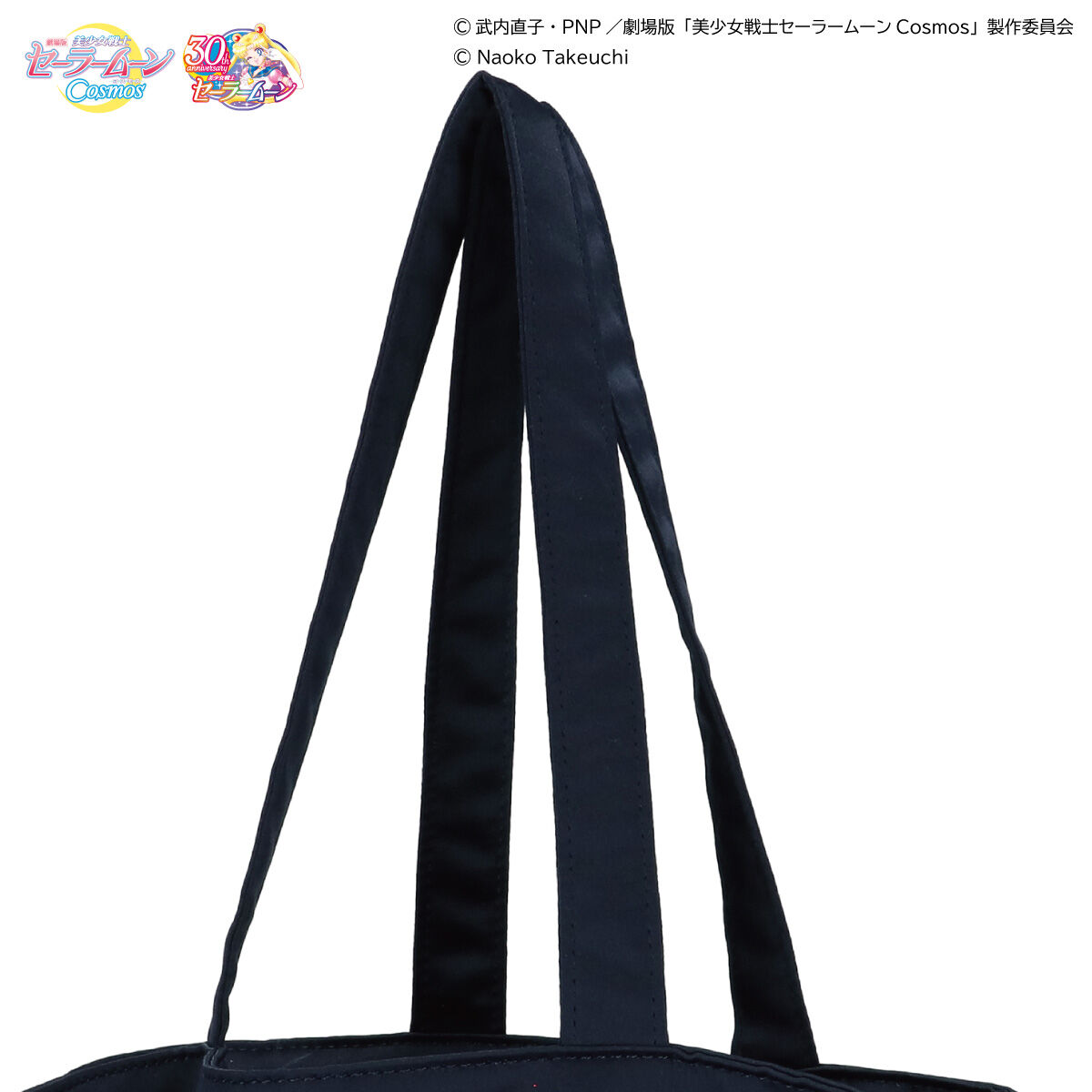 Torby na zakupy - granatowe; z dwiema kokardami; do wyboru wzory inspirowane Sailor Moon i Sailor Starlights; wymiary torby to 45 x 42 cm; 6900 jenów (ok. 173 zł) za sztukę.